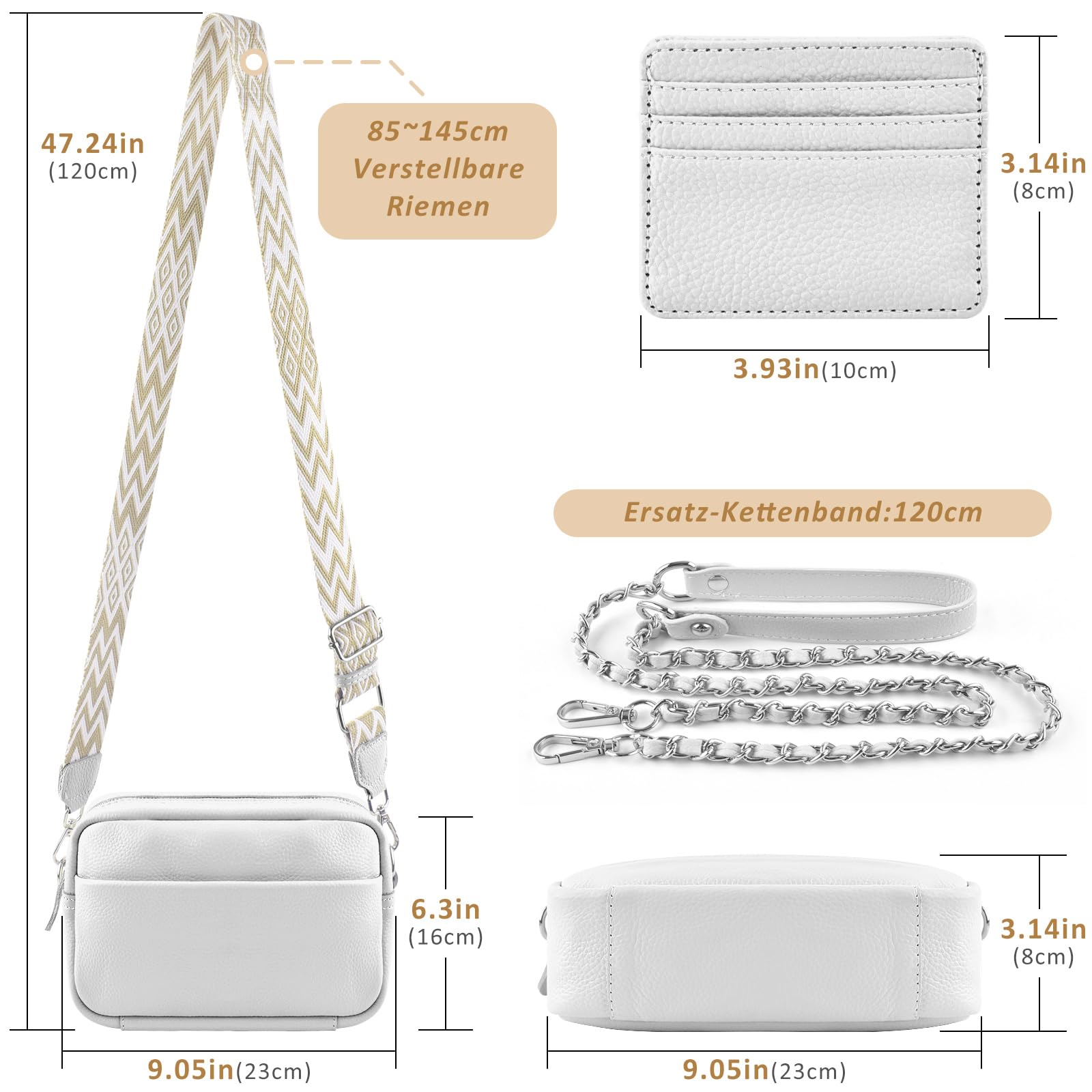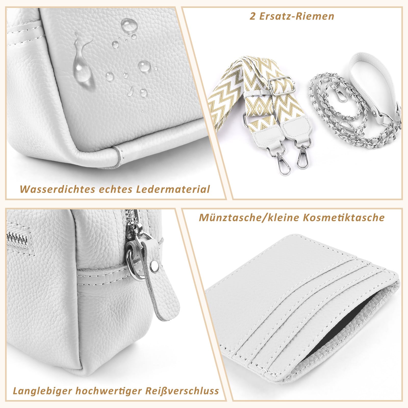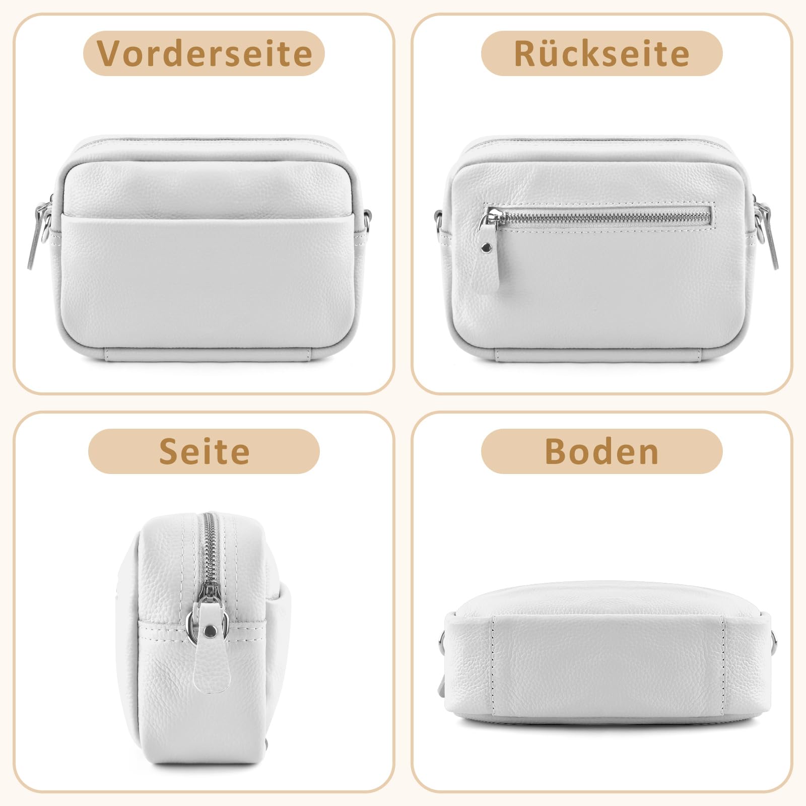 BROTOU Handy Umhängetasche Echtes Leder Crossbody Bag mit 2 Breitem Schultergurt Kartenhalter, Schwarz UmhäNgetasche Damen Leder UmhäNgetasche Damen, Kleine Tasche Damen mit 3 Fächern