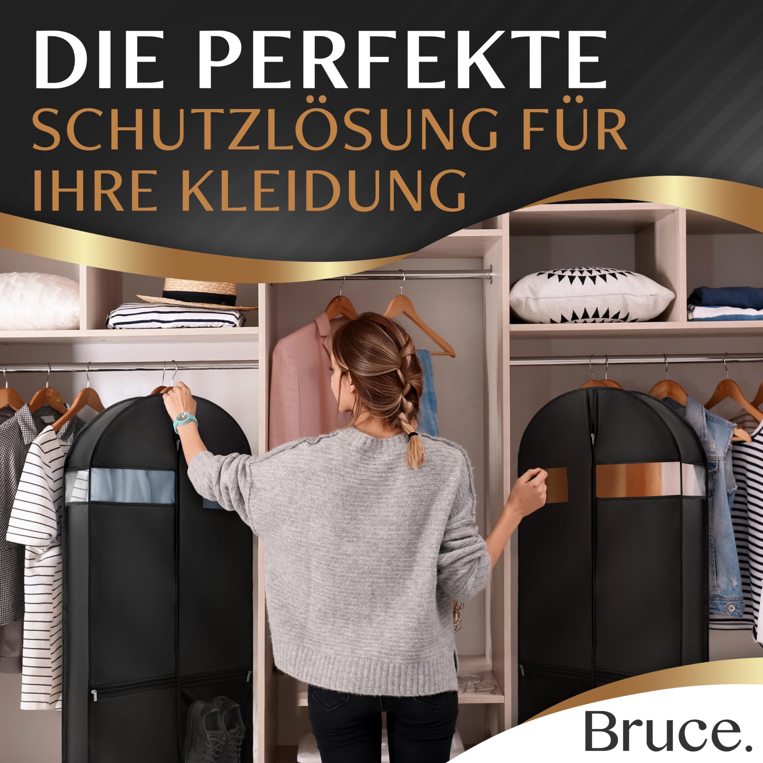 Bruce.® Grosser Kleidersack 120 x 60 x 12 cm – Atmungsaktive Kleiderhülle für 4–6 Teile wie Anzug, Kleid & Jacke – 120 GSM Materialstärke – Ideal für Reisen & Aufbewahrung - Kleidersäcke herren