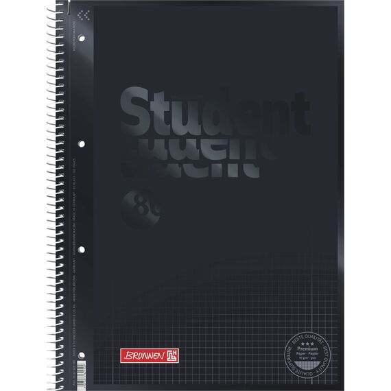 Collegeblock Premium Student Colour Code | A4, Lineatur 28, 80 Blatt, onyx.ProduktbeschreibungDer Collegeblock Premium Student Colour Code vereint hochwertiges Papier, durchdachte Formatierung und eine edle Optik in einem praktischen A4-Block. Mit der Lineatur 28 und einem karierten Muster bietet er die ideale Grundlage für Notizen, Skizzen und Strukturierungen im Studium, im Unterricht oder im Alltag. Die besondere Deckblattfarbe onyx mit fühlbarem Matt-Glanz-Effekt verleiht dem Block eine elegante, moderne Haptik und macht ihn zu einem zuverlässigen Begleiter durchs Seminar, Vorlesung oder Lernalltag.EigenschaftenFormat und Inhalt: A4, 80 Blatt (160 Seiten), Spiralbindung, 4-fach Lochung