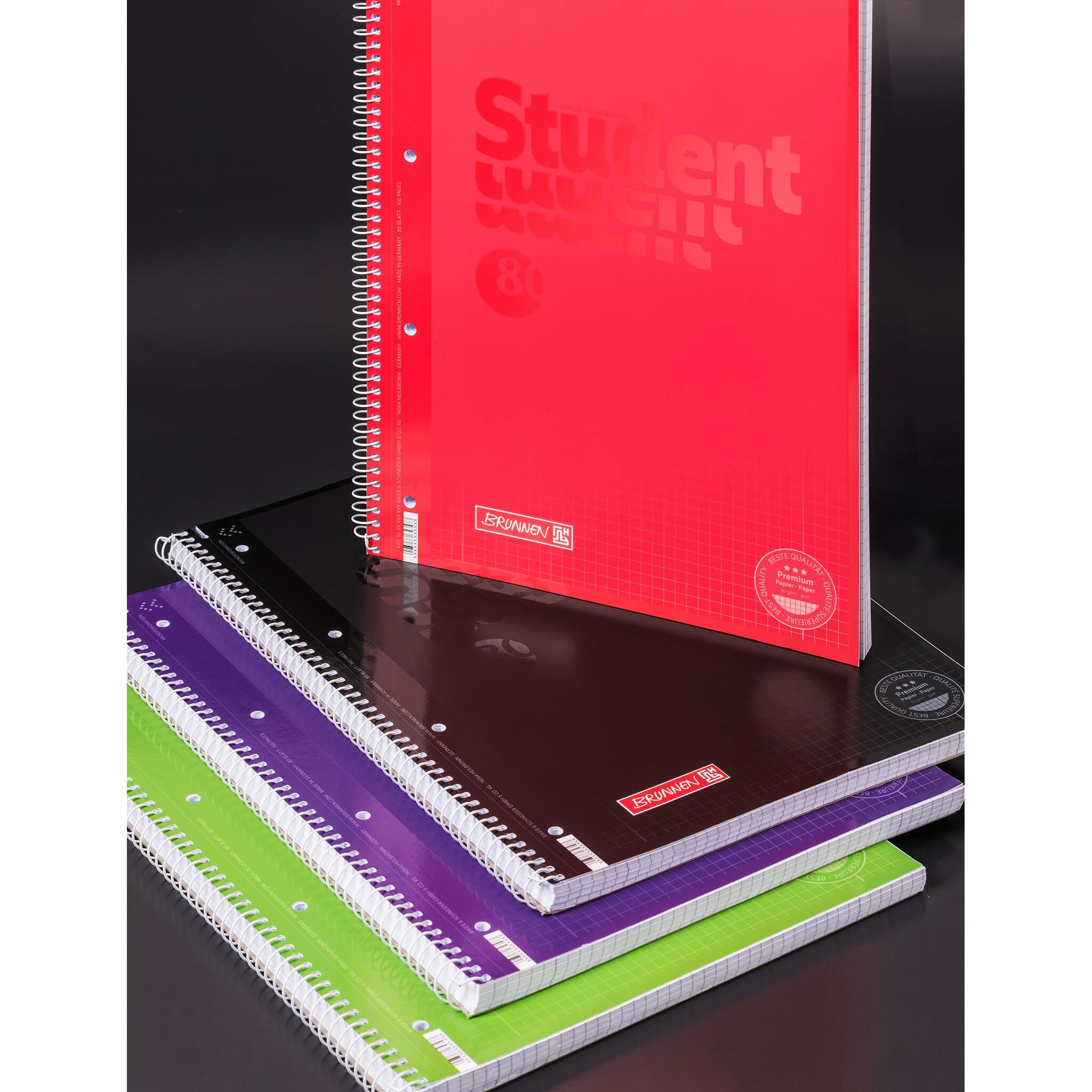 BRUNNEN 1067928190 Collegeblock Premium Student Colour Code | A4, Lineatur 28, 80 Blatt, onyx (A4 (Packung mit 5))