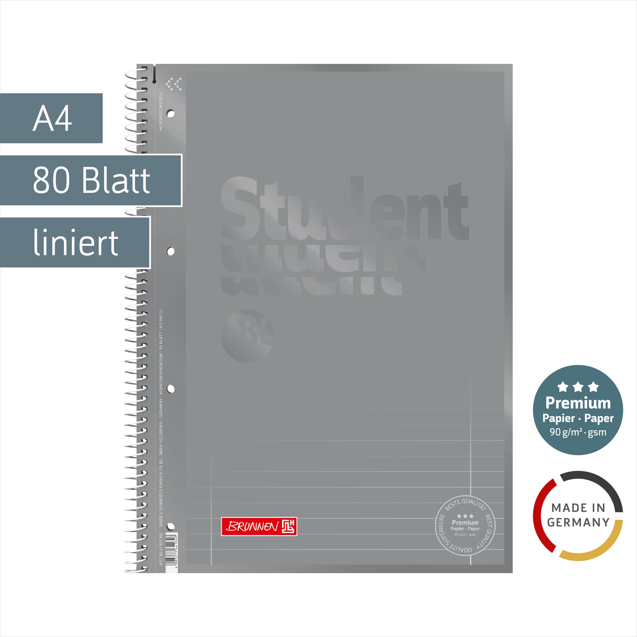 BRUNNEN Collegeblock Premium Student Colour Code | A4, Lineatur 27, 80 Blatt, silver