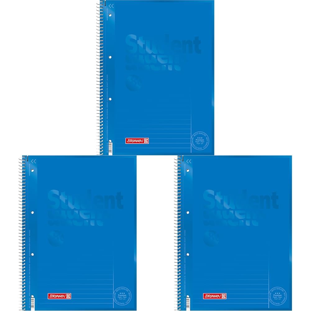 Brunnen 1067925133 Notizblock/Collegeblock Student Colour Code (A4 liniert, Lineatur 25, 90 g/m², 80 Blatt) blau (Packung mit 3)