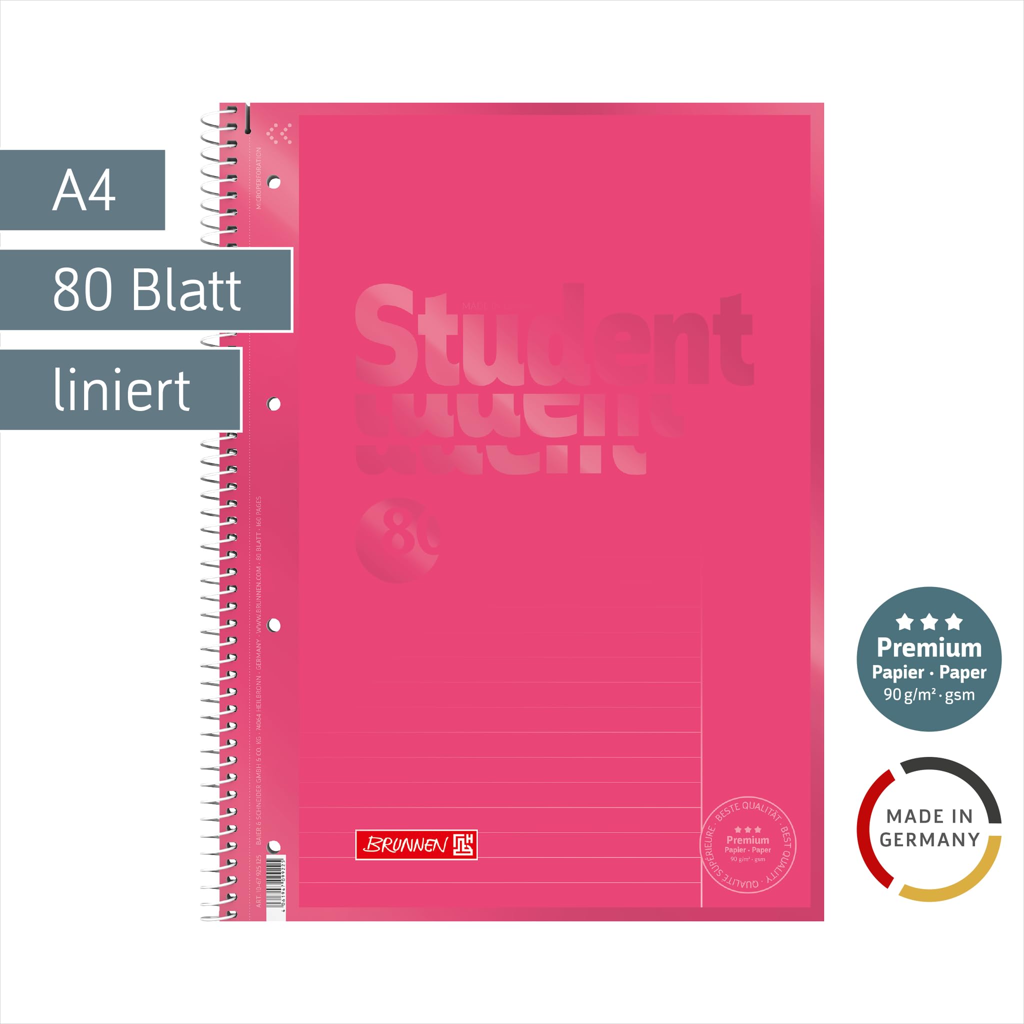 BRUNNEN Collegeblock Premium Student Colour Code | A4, Lineatur 25, 80 Blatt, tulip
