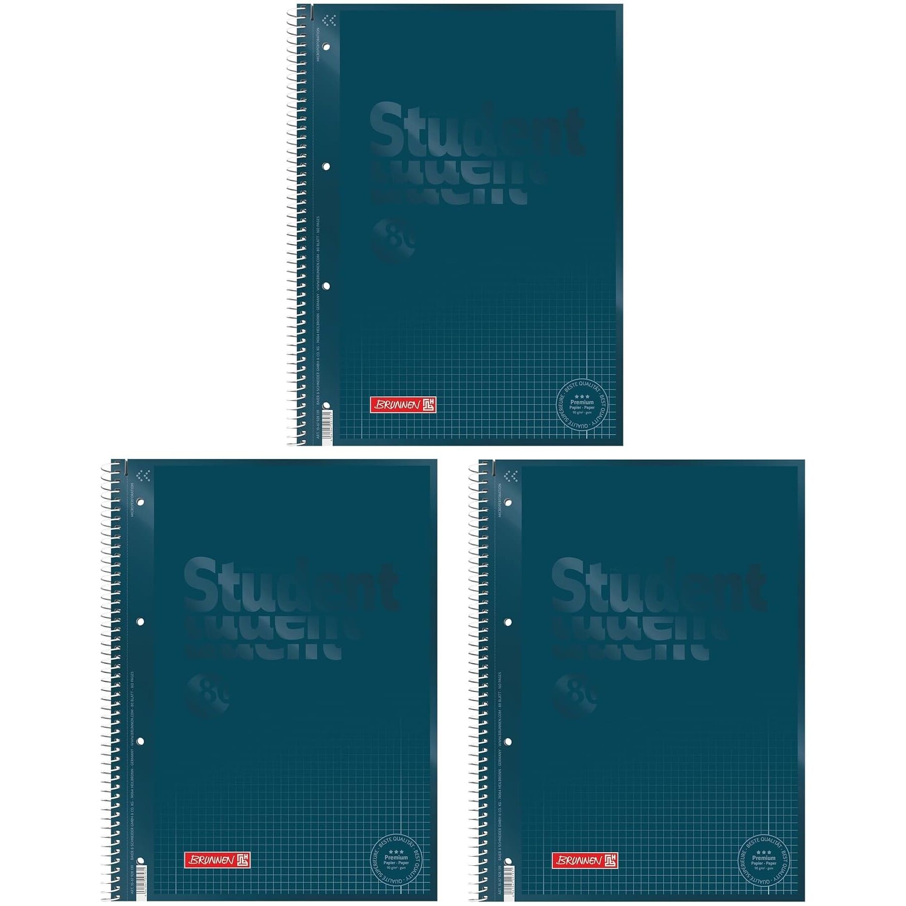BRUNNEN Collegeblock Premium Student Colour Code | A4, Lineatur 28, 80 Blatt, denim (A4 (Packung mit 3))