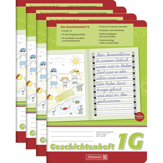 Brunnen Schreiblernheft (4 Stück, Geschichtenheft Lin. 1G)