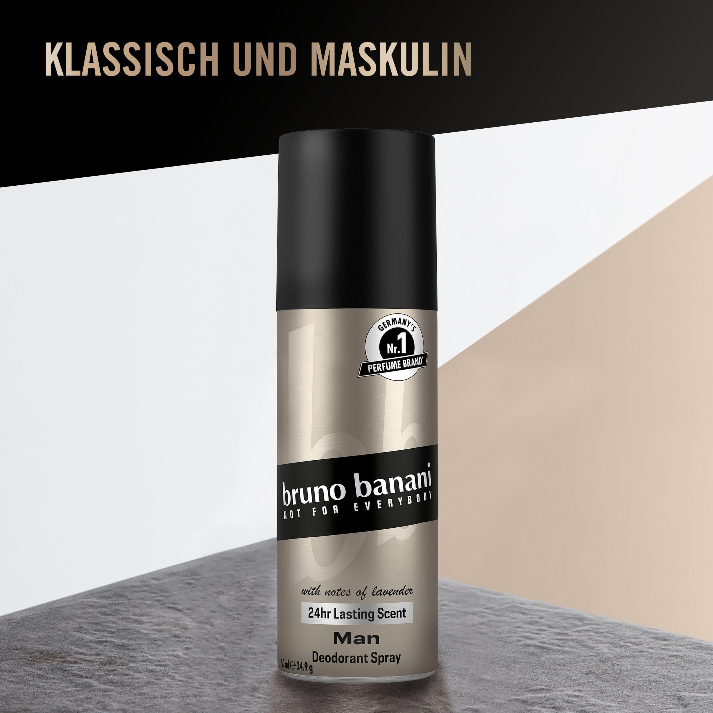 bruno banani Man Deo Bodyspray fuer Herren, zeitlos-frischer orientalischer Duft mit Lavendel, Basilikum und Sternanis, 24h Duft, 50 ml