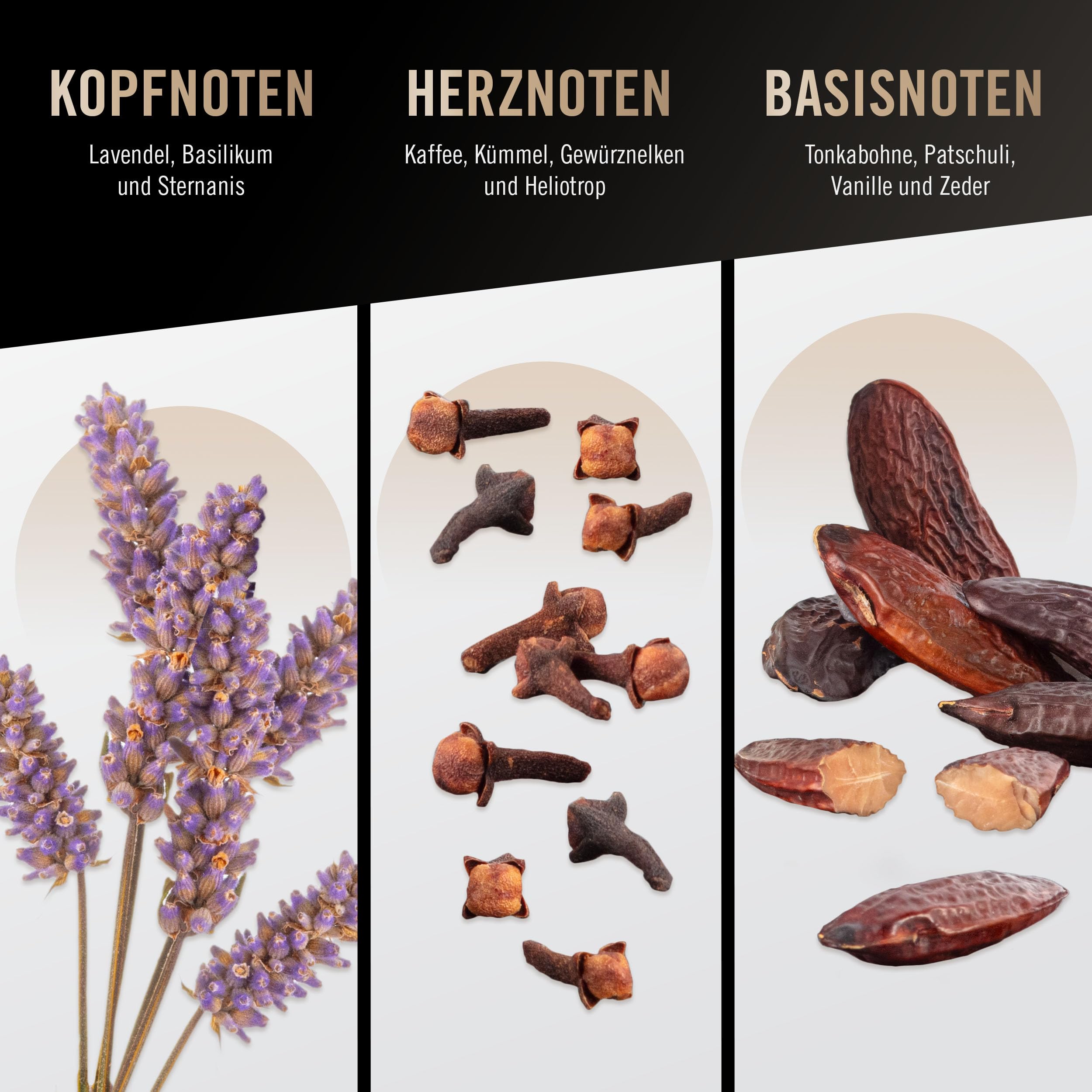 • Herznote: Würzig-maskuline Mischung aus Kaffee, Kümmel und Nelken
