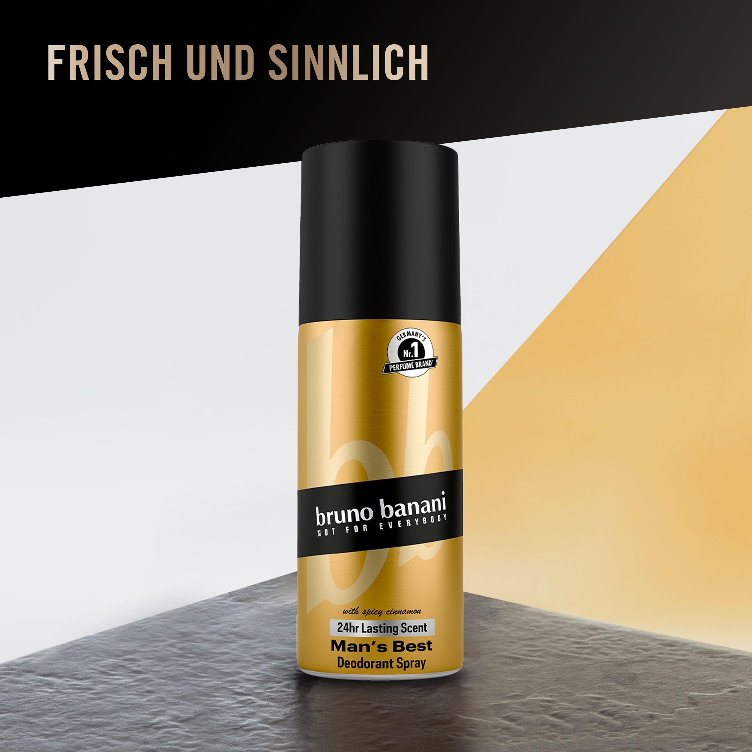bruno banani Man's Best Deo Bodyspray fuer Herren, sinnlich-orientalischer Duft mit Apfel, Pampelmuse und rosa Pfeffer, 24h Duft, 150 ml
