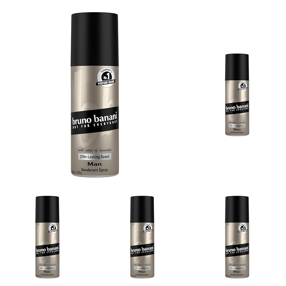 bruno banani Man Deo Bodyspray fuer Herren, zeitlos-frischer orientalischer Duft mit Lavendel, Basilikum und Sternanis, 24h Duft, 50 ml (5er Pack)