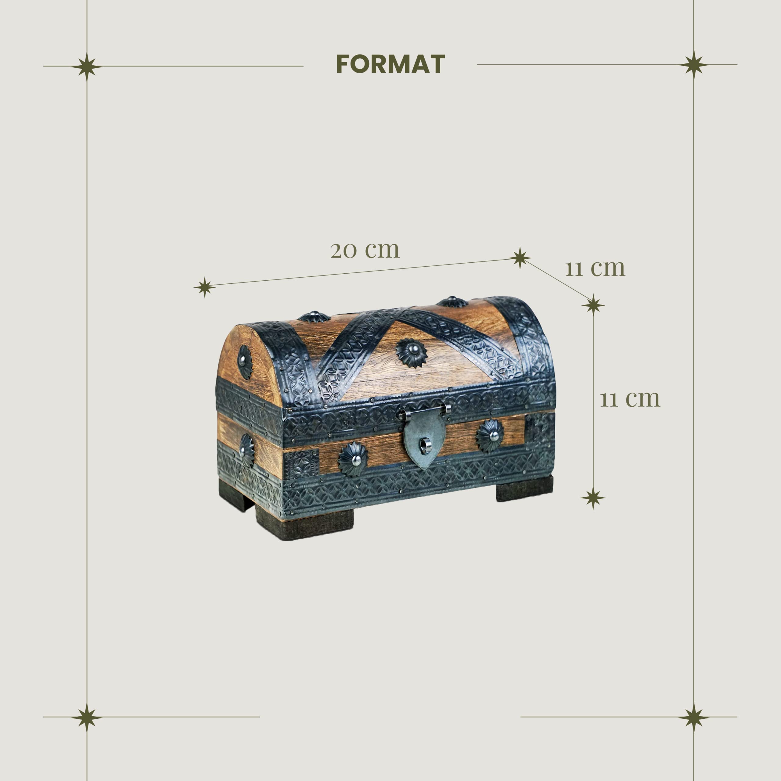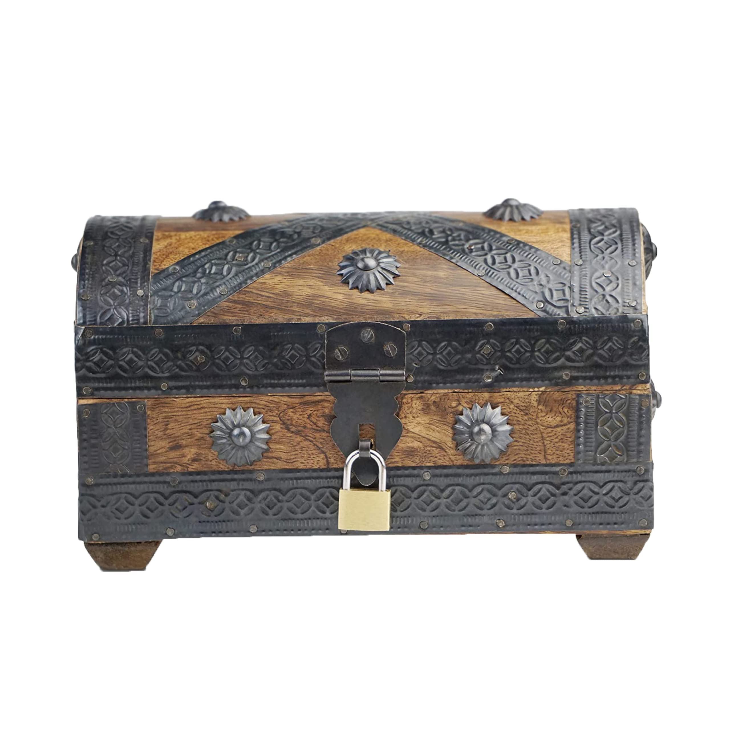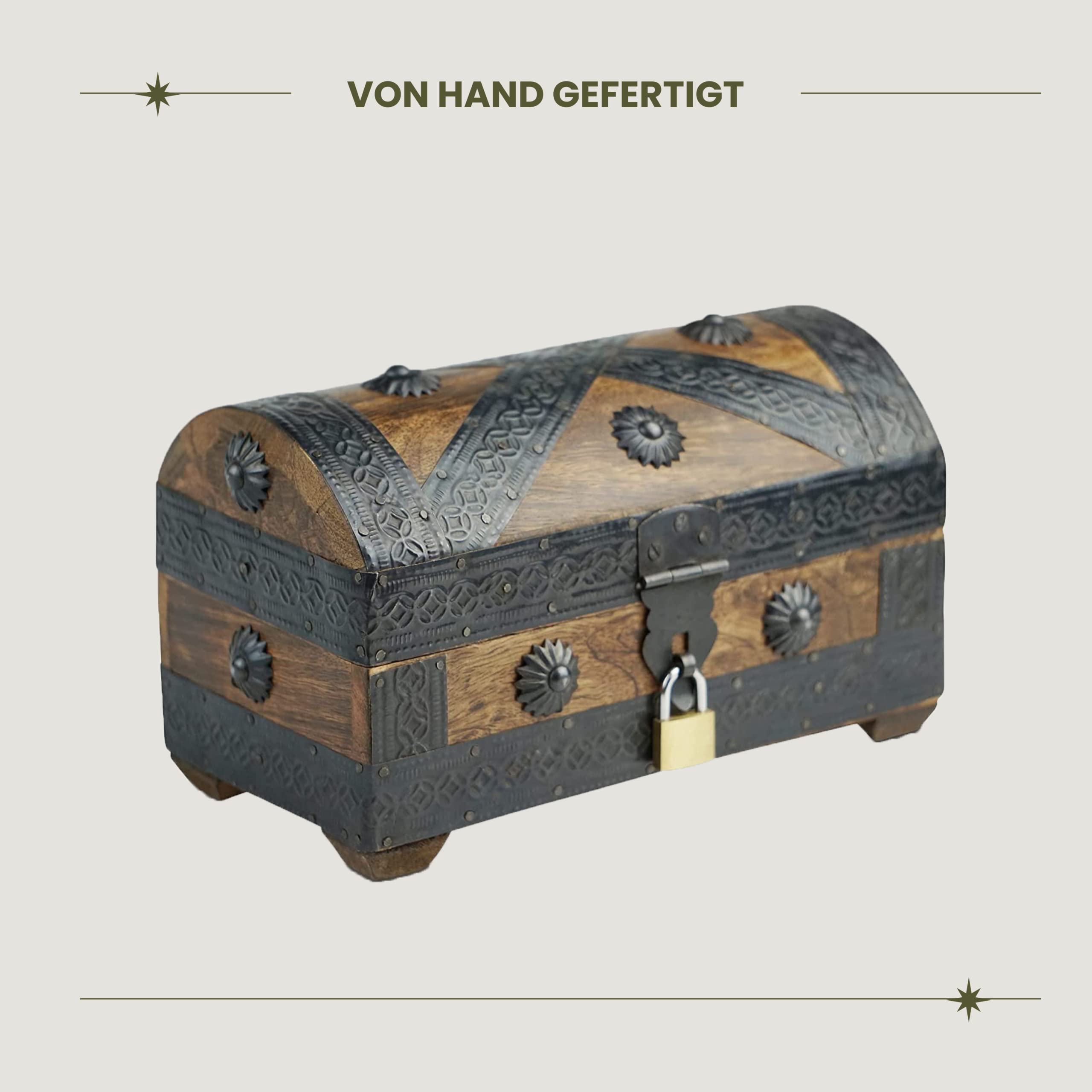 BRYNNBERG Piraten-Schatztruhe-Aufbewahrungsbox – robuste Holz- und Metallkonstruktion – Vintage-Design – klein mit Schloss 20 x 11 x 11 cm