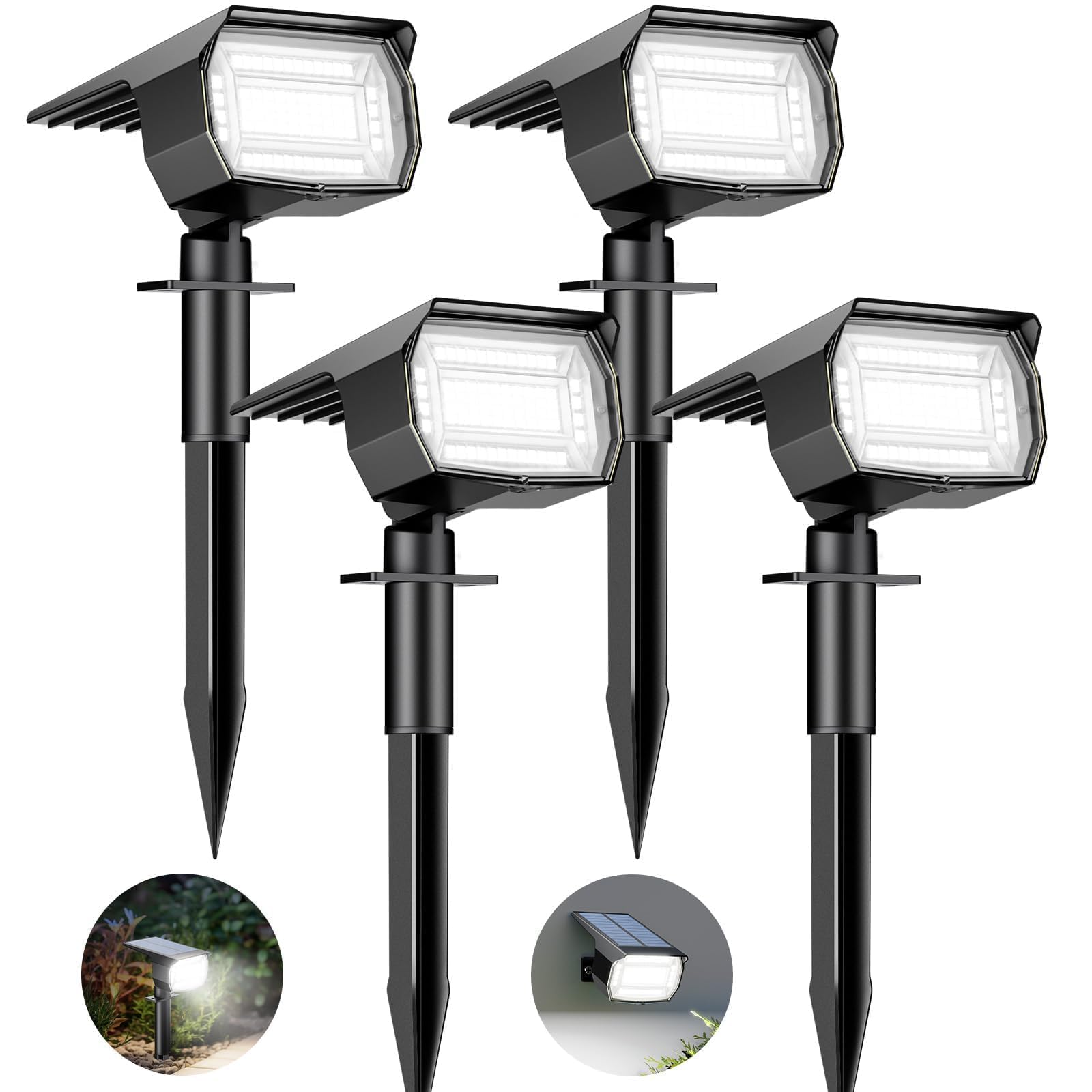 Btfarm 4 Stück Solarstrahler für Aussen Garten, 72 LED Solarlampen für Aussen IP65 Wasserdicht Solar Strahler Gartenleuchten, Solarleuchten für Rasen Auffahrt Gehweg Patio Baum, Kaltweiss
