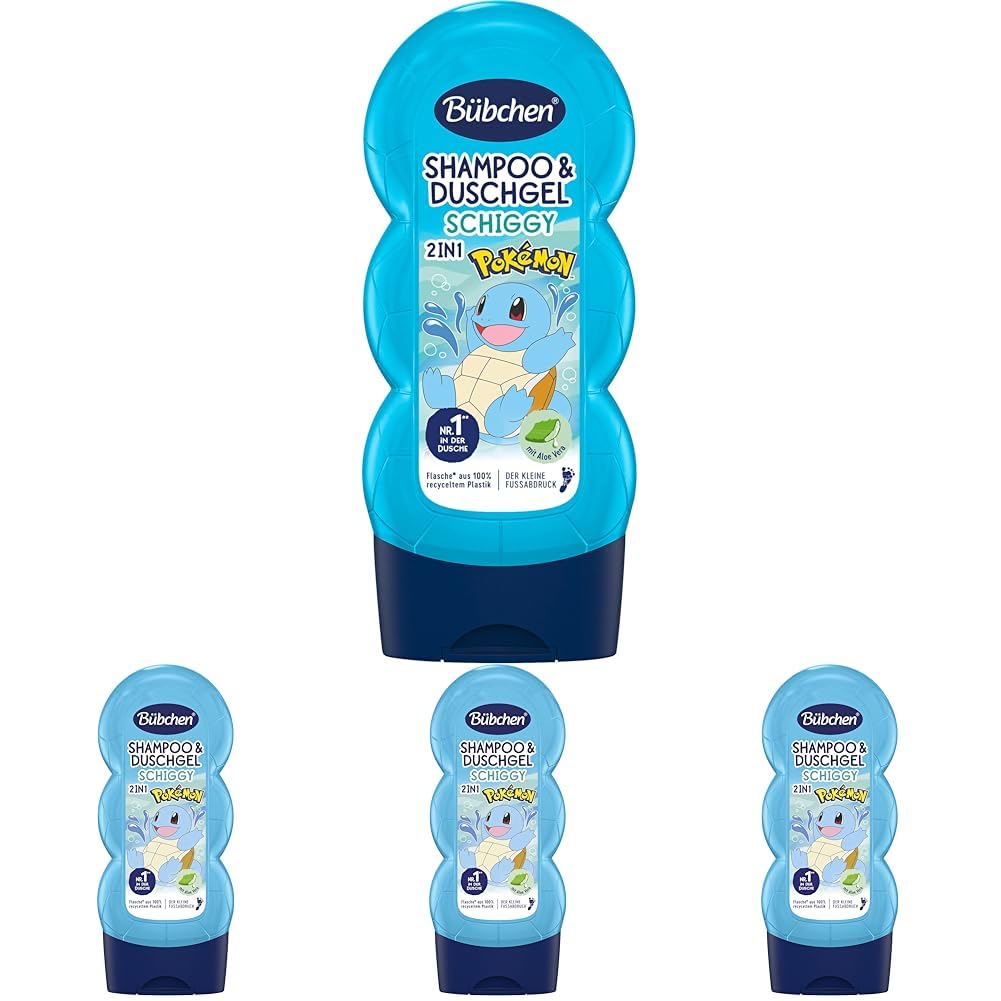 Bübchen Shampoo & Duschgel für Kinder, Pokémon Schiggy Edition, 230 ml (Packung mit 4)