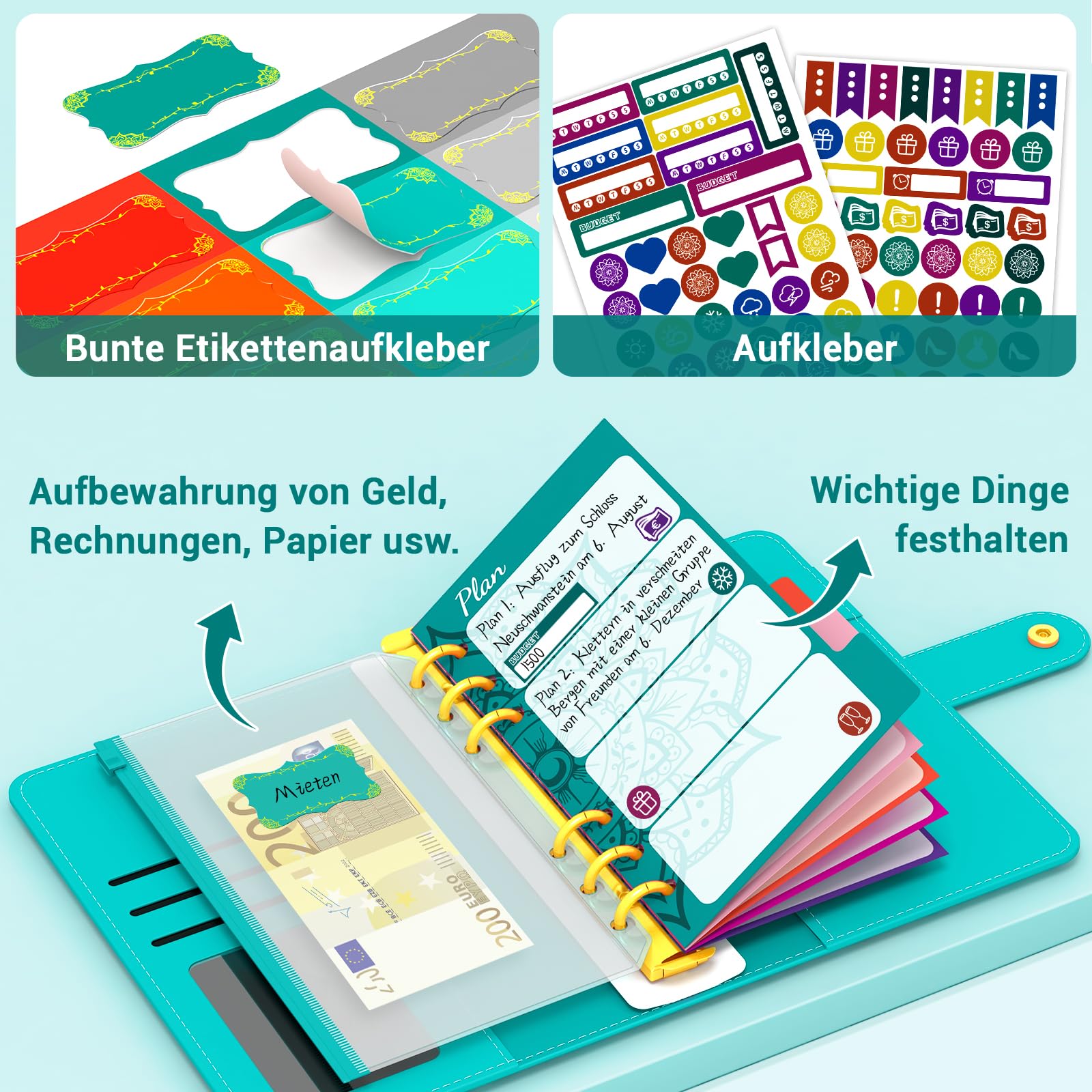 Budget Planner Deutsch A6, Finanzplaner, Haushaltsbuch zum Eintragen, Sparbuch für Geld, BudgetPlaner, Geldsparmappe, Budget Binder, Geld Organizer, Personal Organizer (türkis)