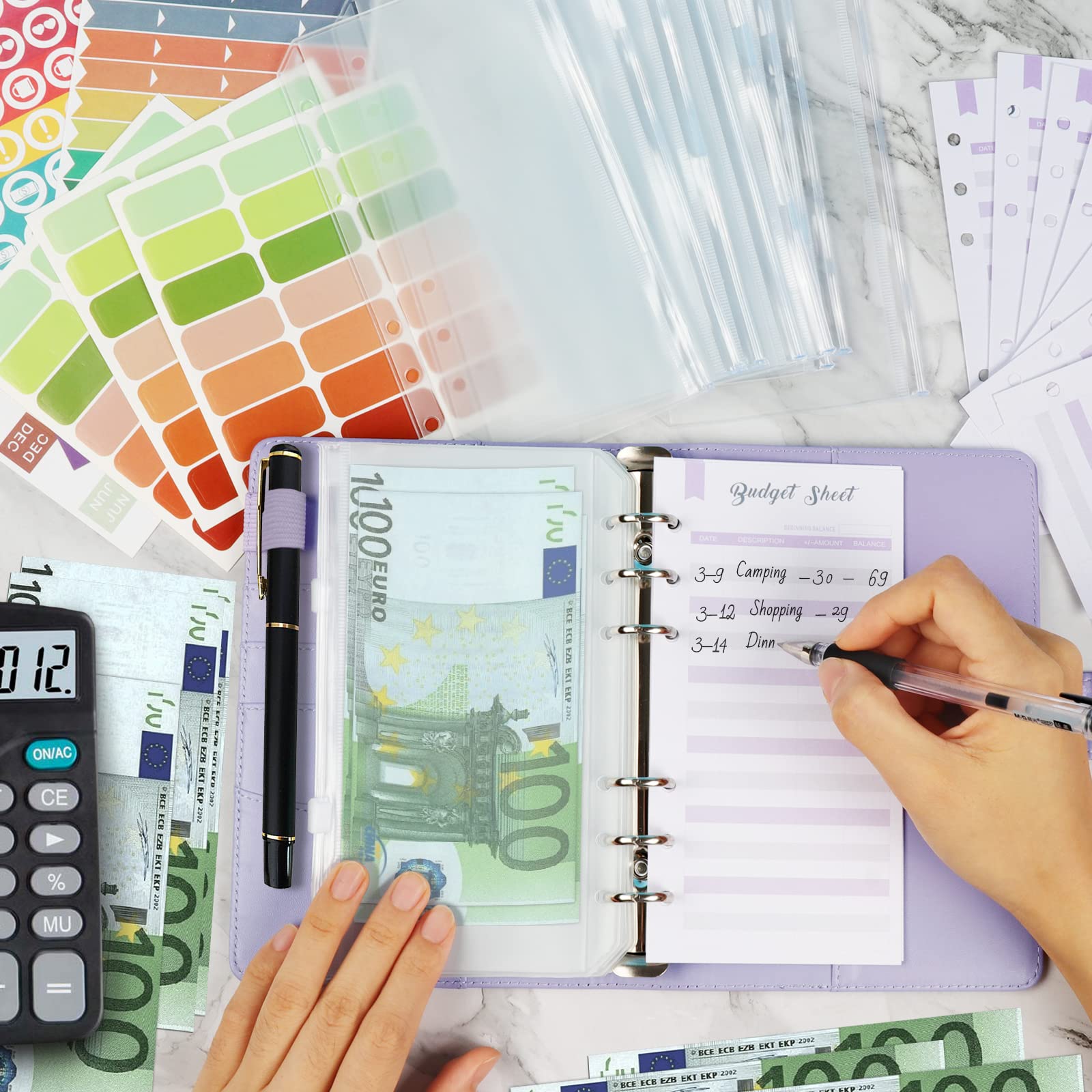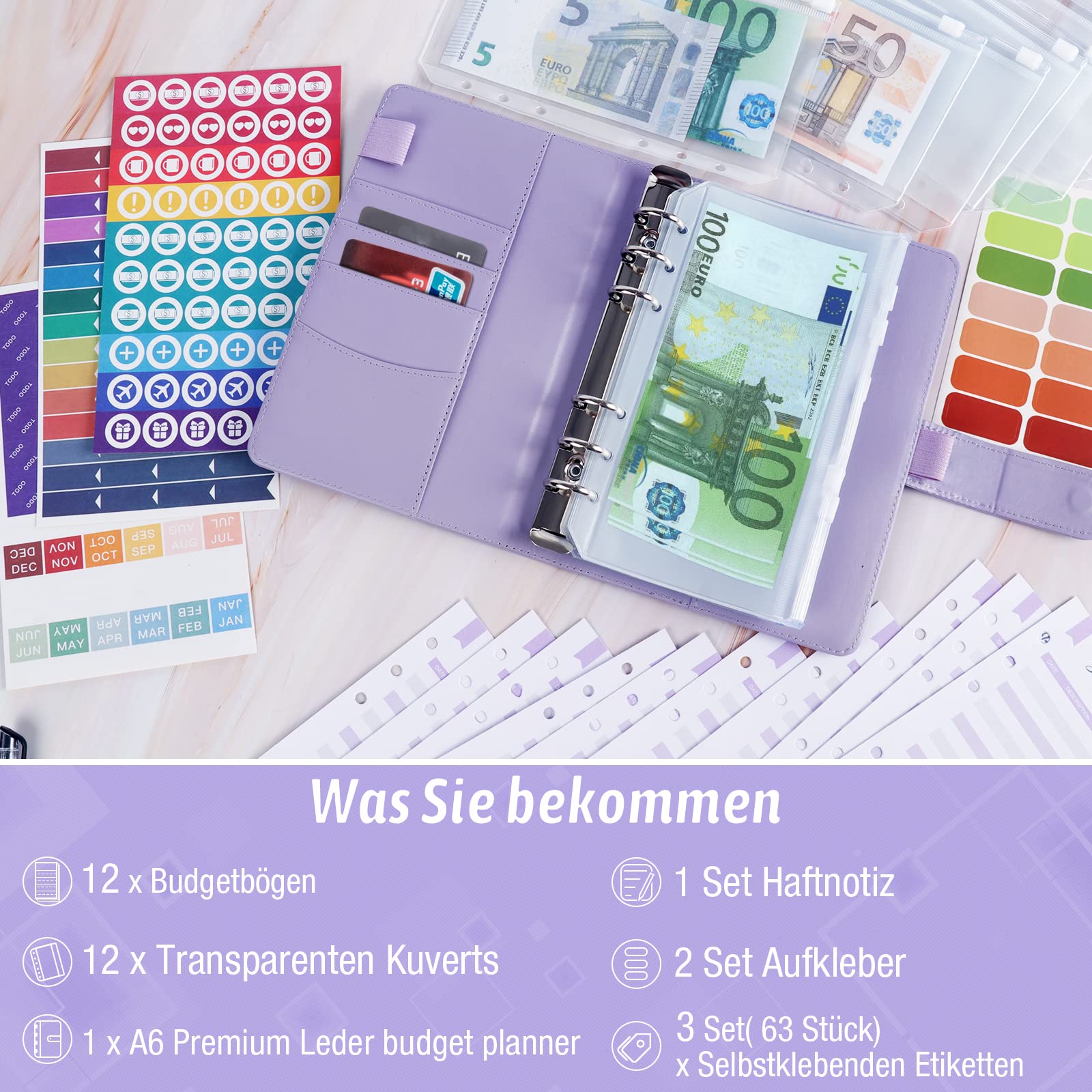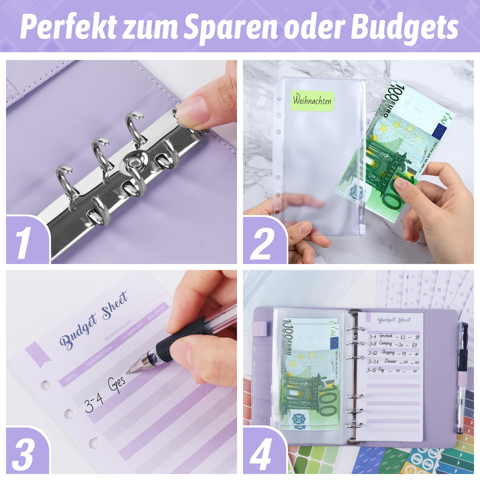 Budget Planner Deutsch Budget Binder A6 - Bugetplaner Haushaltsbuch mit Geldfächer, Finanzplaner Geld Organizer Sparbuch mit Folien für Sparen Sparchallenge Umschlagmethode Geldplaner Cash Stuffing