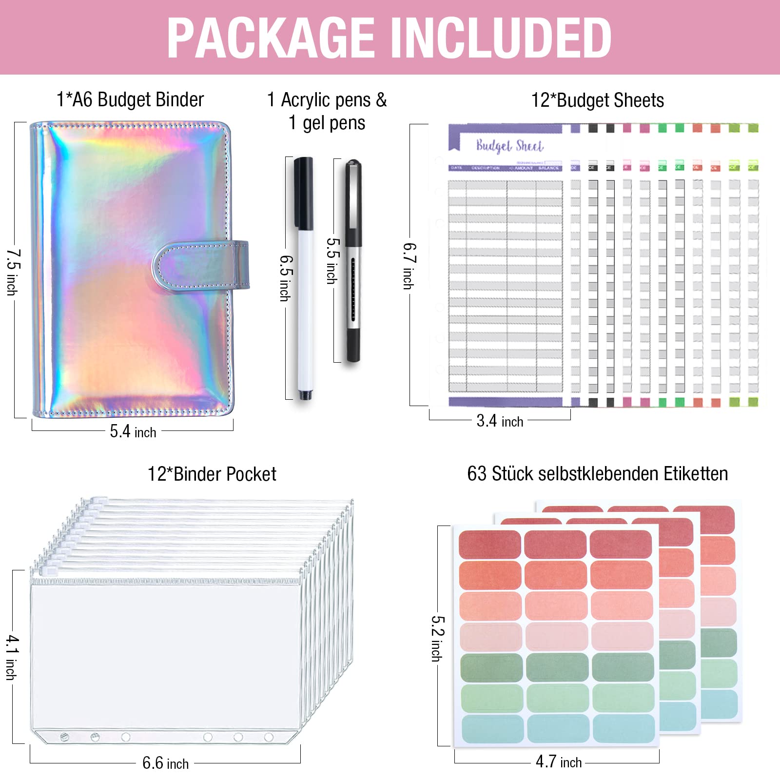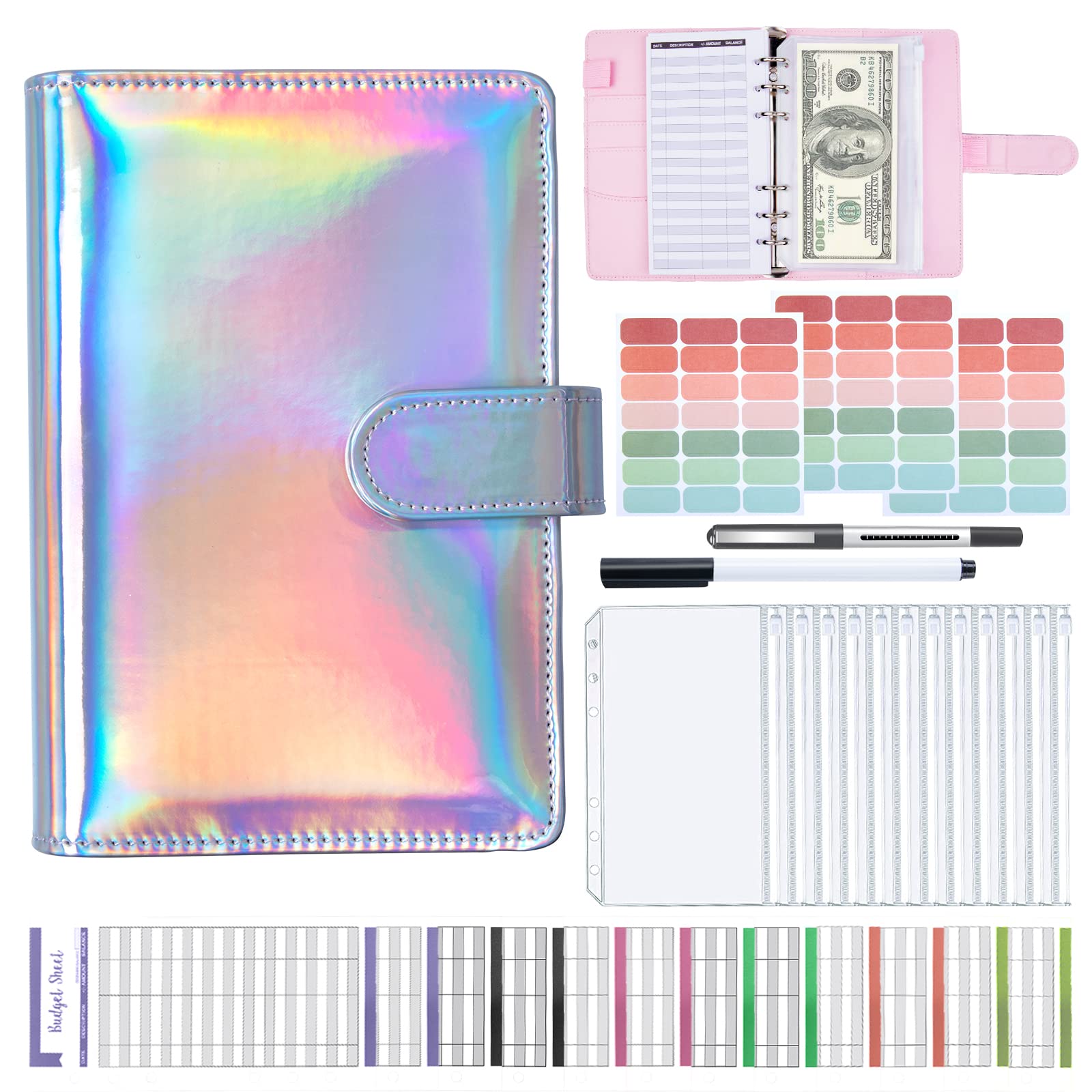 Budget Planner Budget Binder - ANYUKE A6 Budget Planner Geldumschläge Umschlagmethode, Budgetplaner Geld Organizer Sparbuch mit Folien für Finanzplaner, Geld Sparen Mappe, Cash Stuffing - Laser Silber