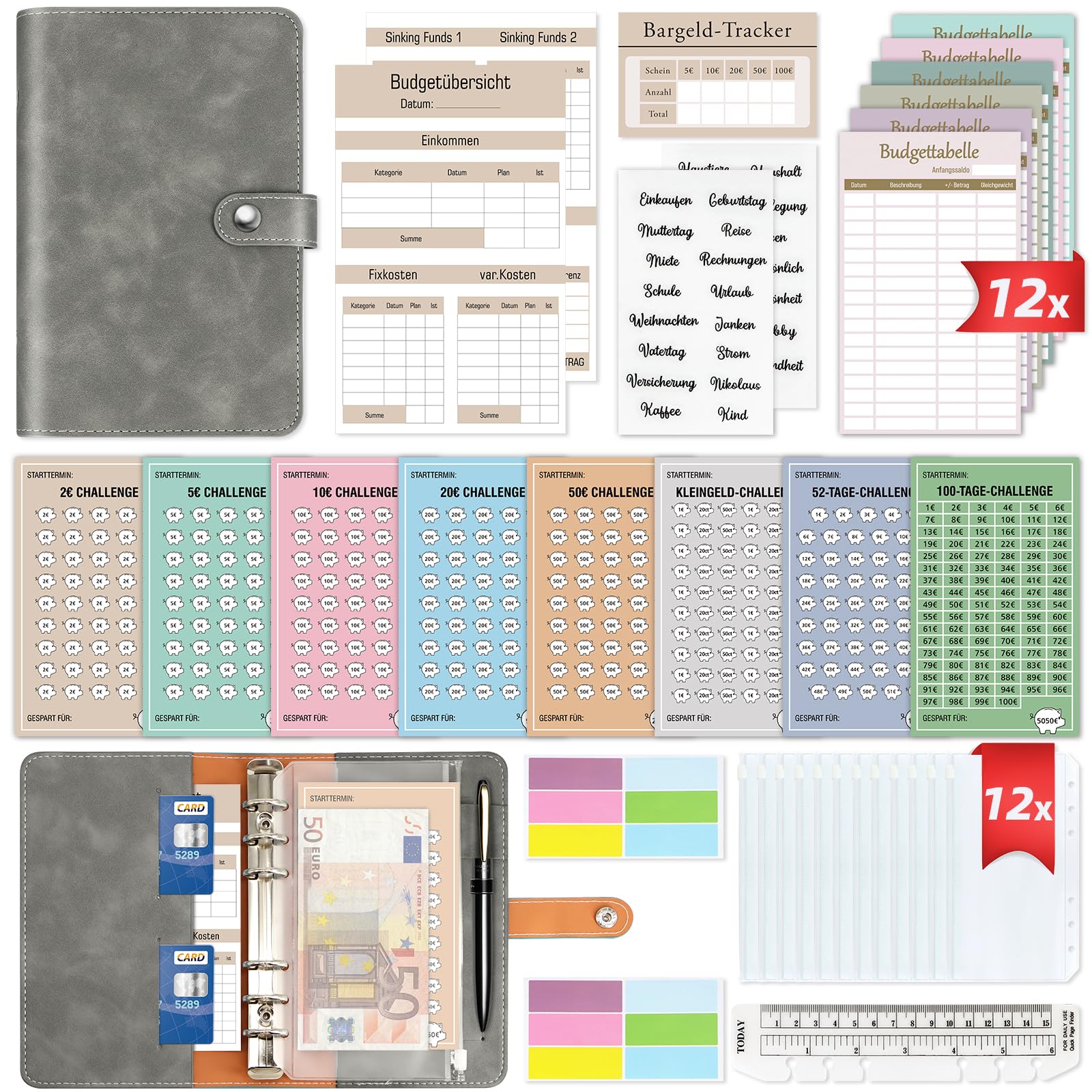 2024 Budget Planner Deutsch - Bugetplaner Deutsch Startset mit 8 Sparchallenges - Finanzplaner Haushaltsbuch - Geld Organizer Sparbuch - Cash Stuffing - Budget Binder A6 - Sparen mit Umschlagmethode