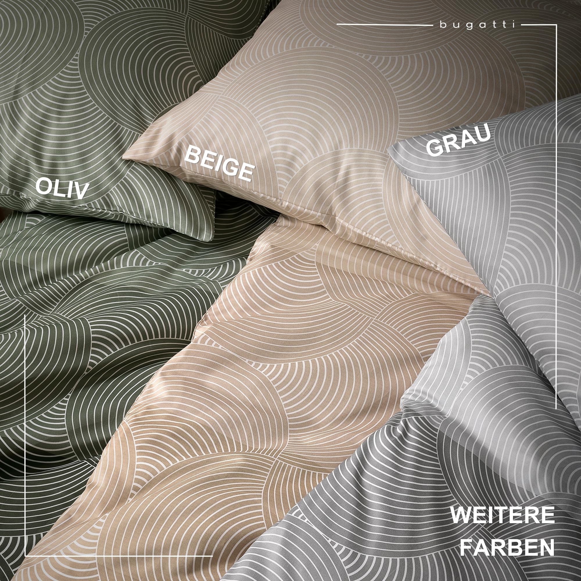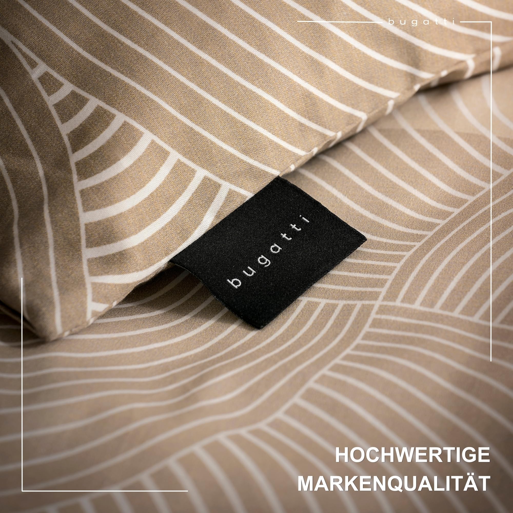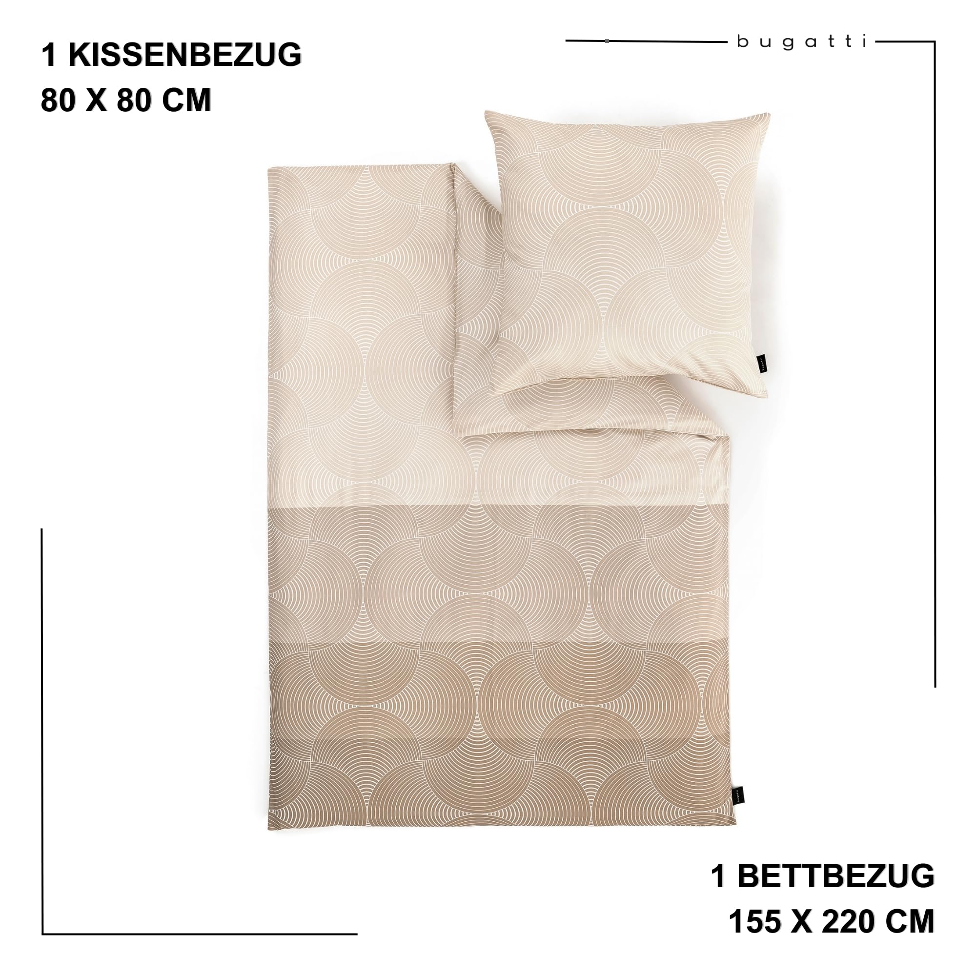 bugatti Bettwäsche 155x220 cm - 100% Baumwolle, Reissverschluss, anschmiegsam, weich & waschbar, Mako Satinbettwäsche Kreise grafisch beige