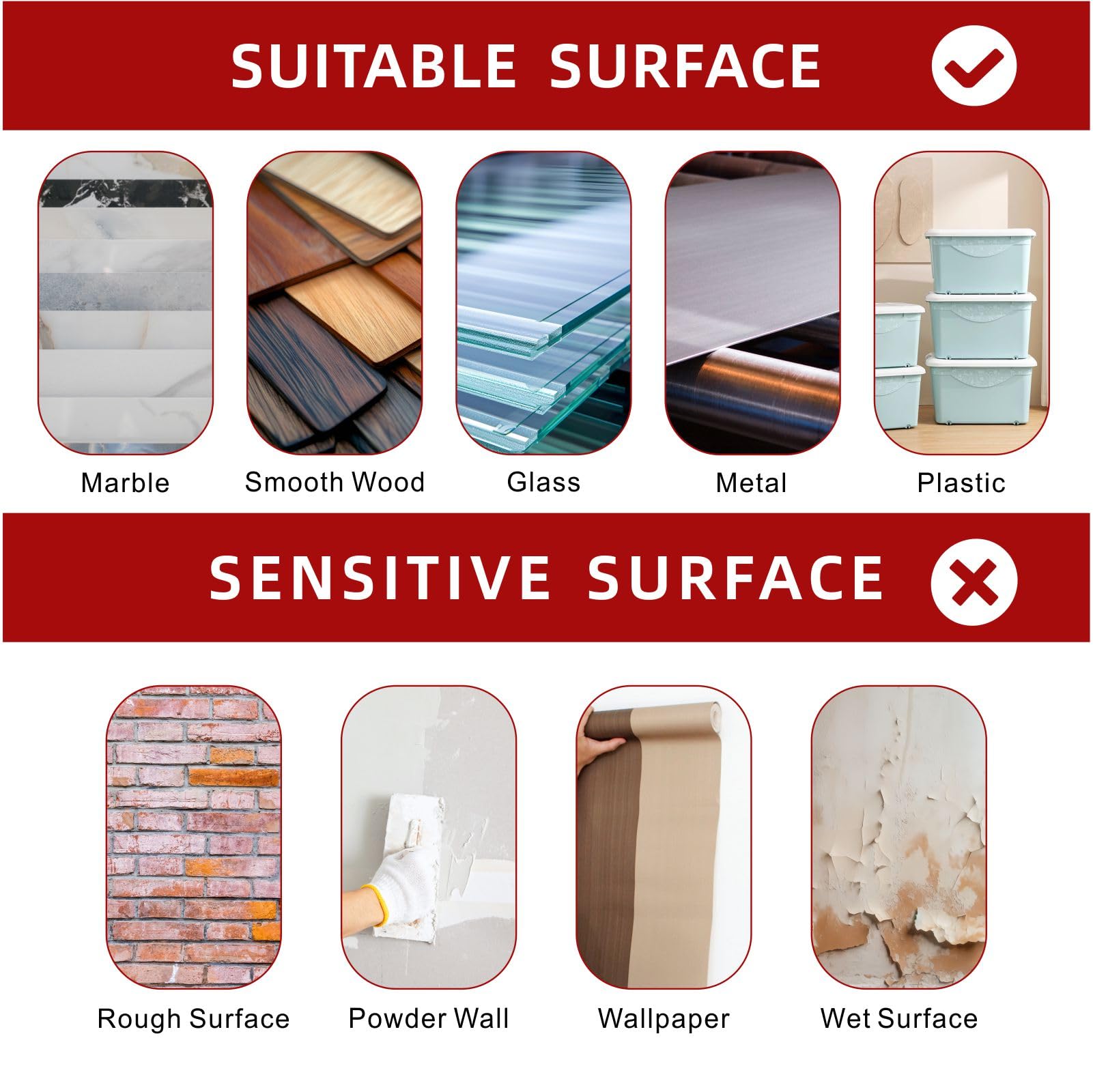 Wir empfehlen die Verwendung auf verschiedenen Materialien wie Glas, Beton, Fliesen, Marmor, Hartholzböden und anderen glatten Oberflächen, um sicherzustellen, dass es keine Schäden verursacht.