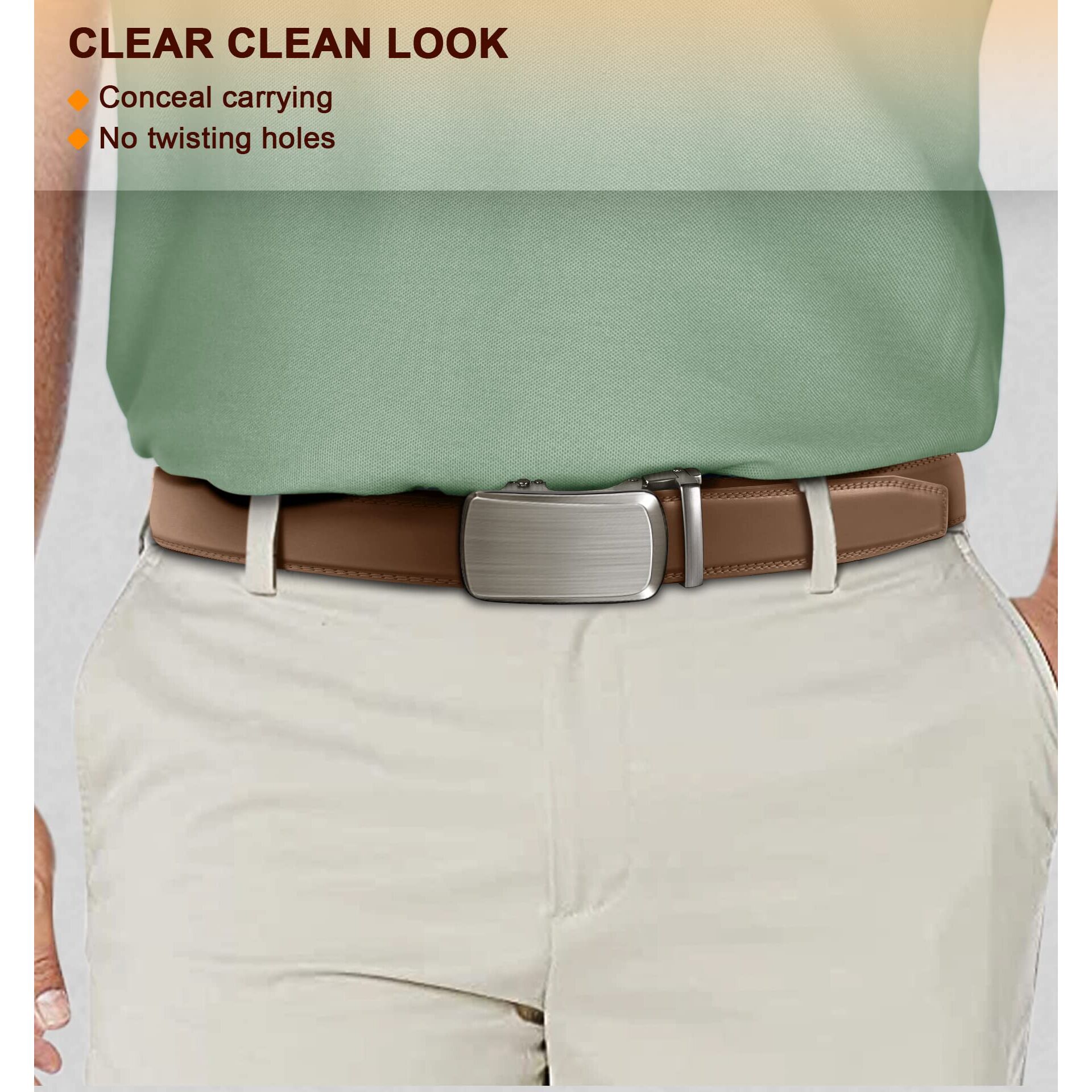- Automatik-Ratschengürtel aus echtem Leder,beidseitig verwendbar,passgenau verstellbar,Breite 35MM(1 3/121");