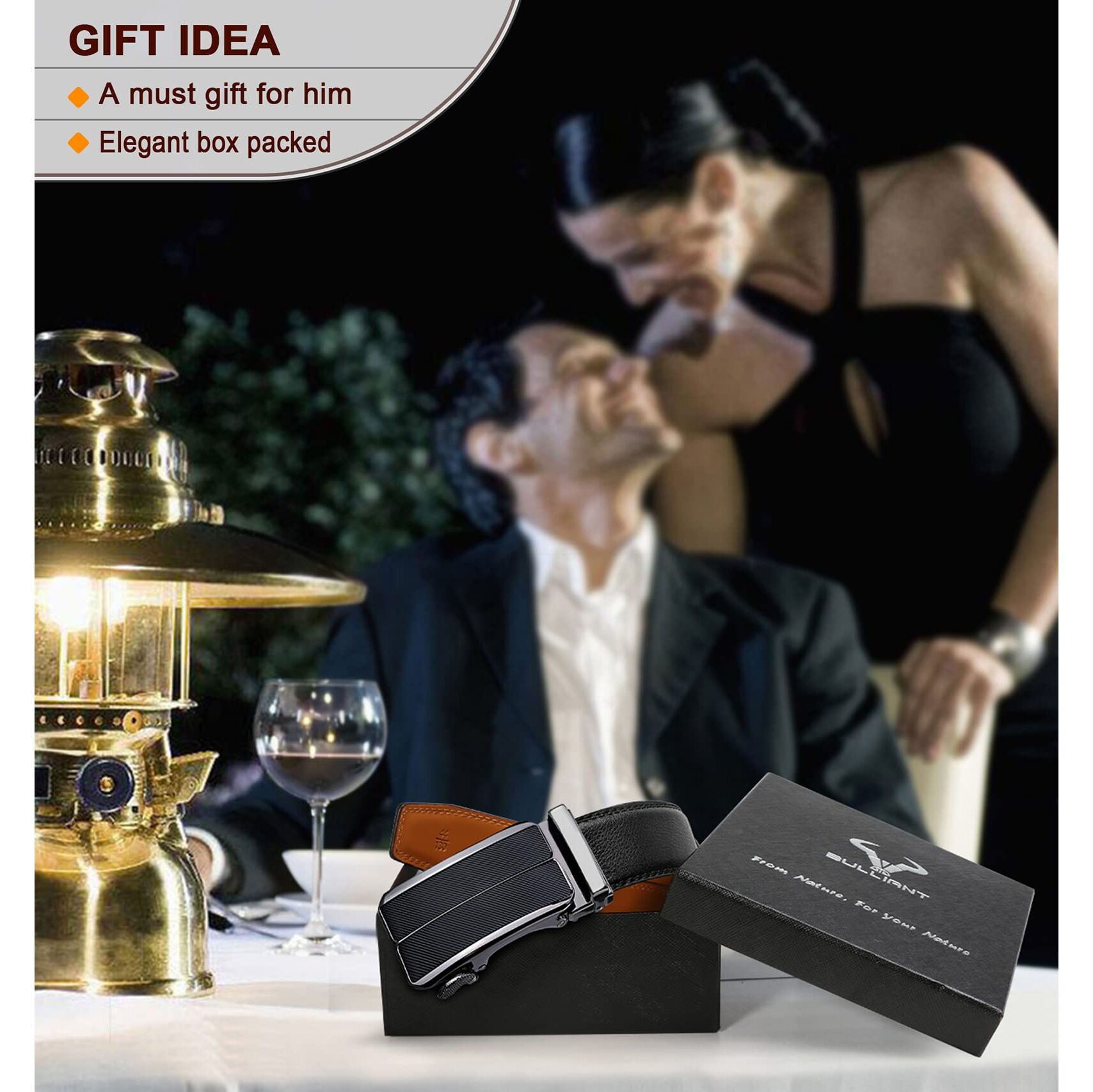 BULLIANT Gürtel Herren, Gürtel Ratsche Ledergürtel Automatikschliesse für Herren Anzug Business Kleidung,Breit 35mm,Grösse Angepasst