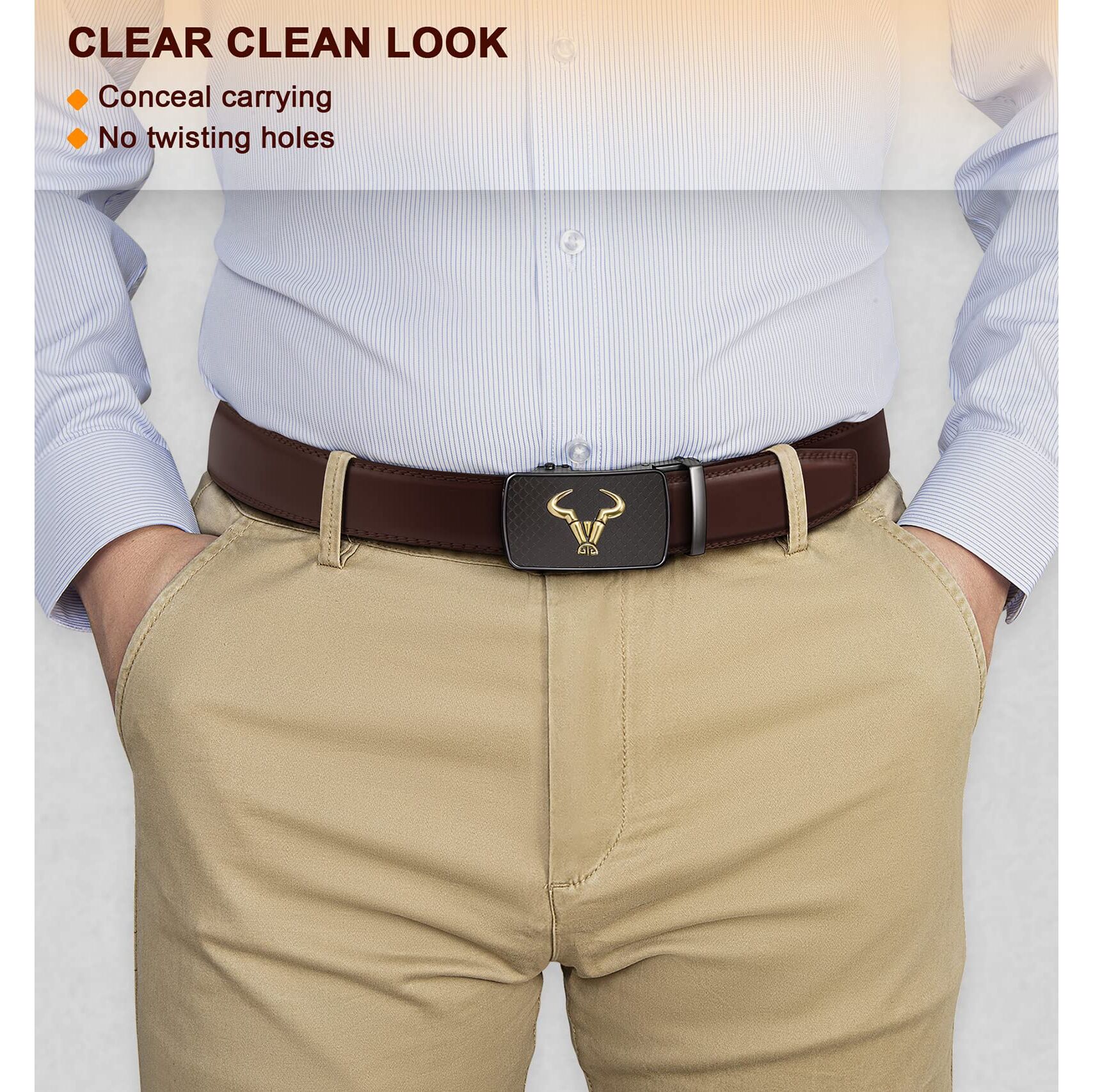 BULLIANT Gürtel Herren, Gürtel Ratsche Ledergürtel Automatikschliesse für Herren Anzug Business Kleidung,Breit 35mm,Grösse Angepasst