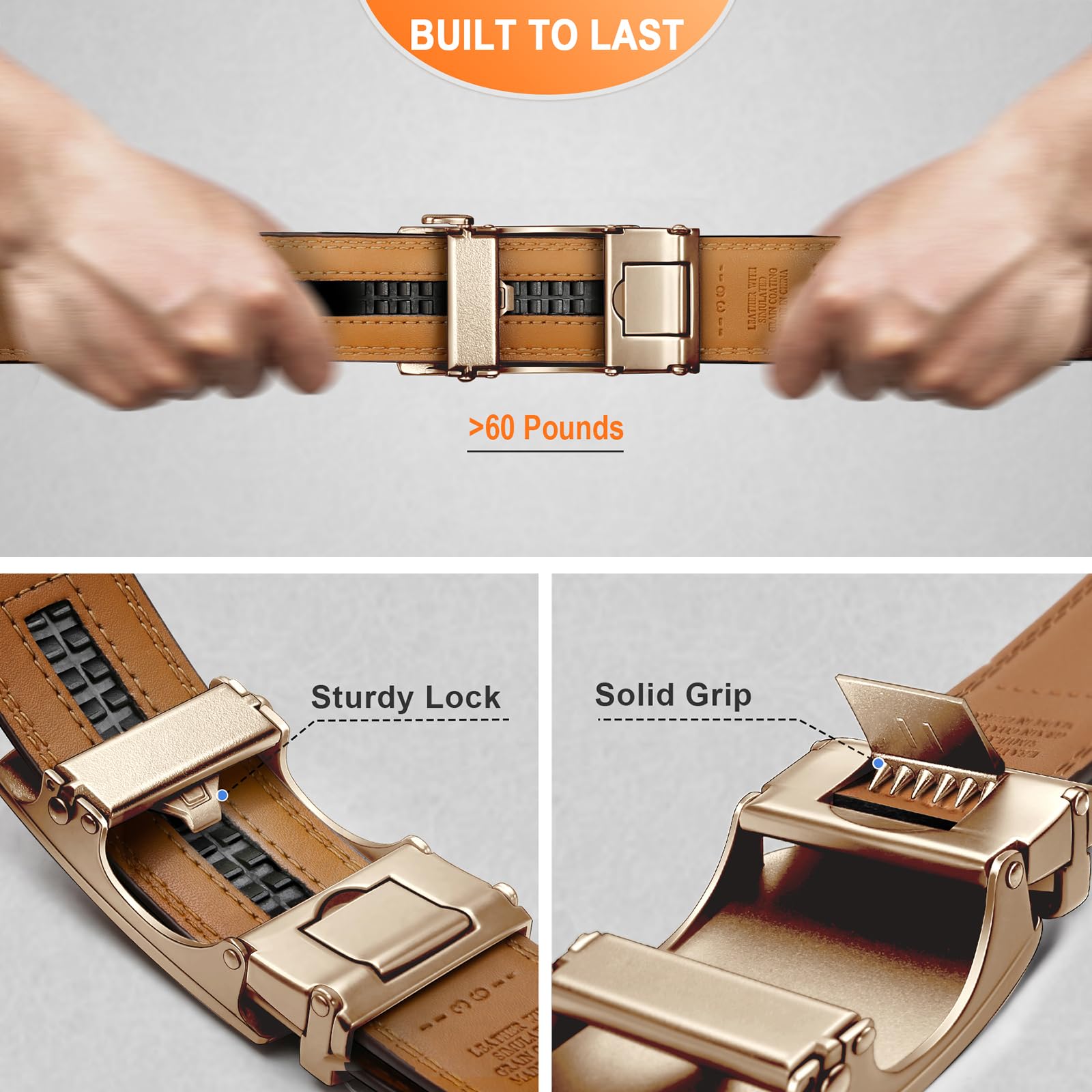BULLIANT Gürtel Herren, Gürtel Ratsche Ledergürtel Automatikschliesse für Herren Anzug Business Kleidung,Breit 35mm,Grösse Angepasst