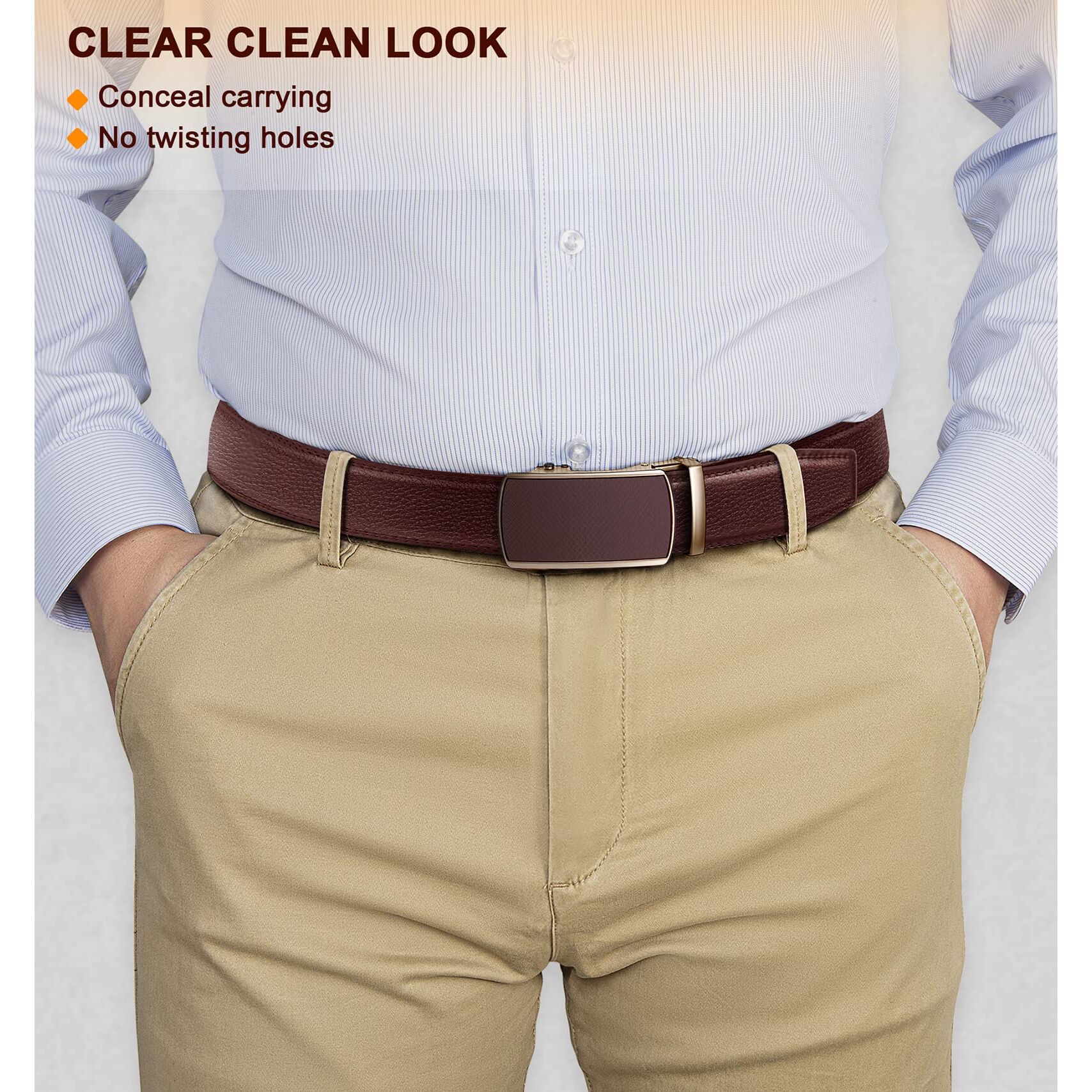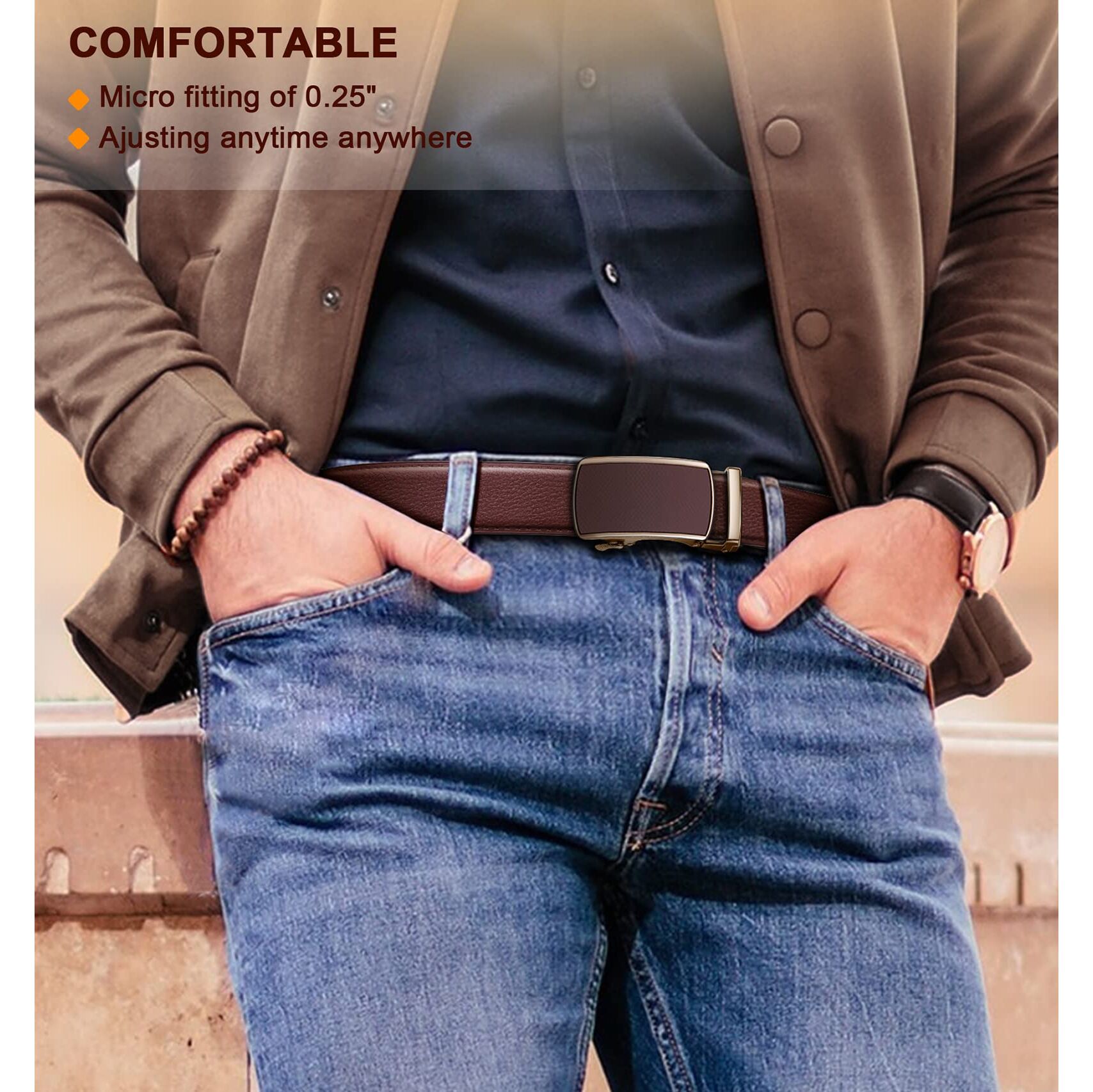 Keine Löcher mehr im Gürtel. Dieser modische Herren-Gürtel bietet 32 einzigartige Anpassungen im Gurt für eine extrem bequeme Passform. Verabschieden Sie sich einfach von der typischen „Zwischengrösse“.