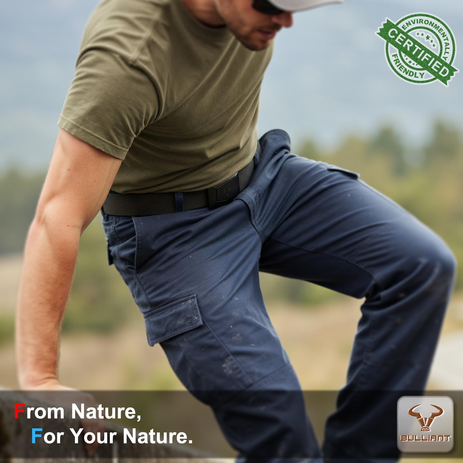 BULLIANT Taktischer Gürtel, Gürtel Herren Arbeitsgürtel Militär Wandern 3,8cm,Schnellverschluss Metallschnalle