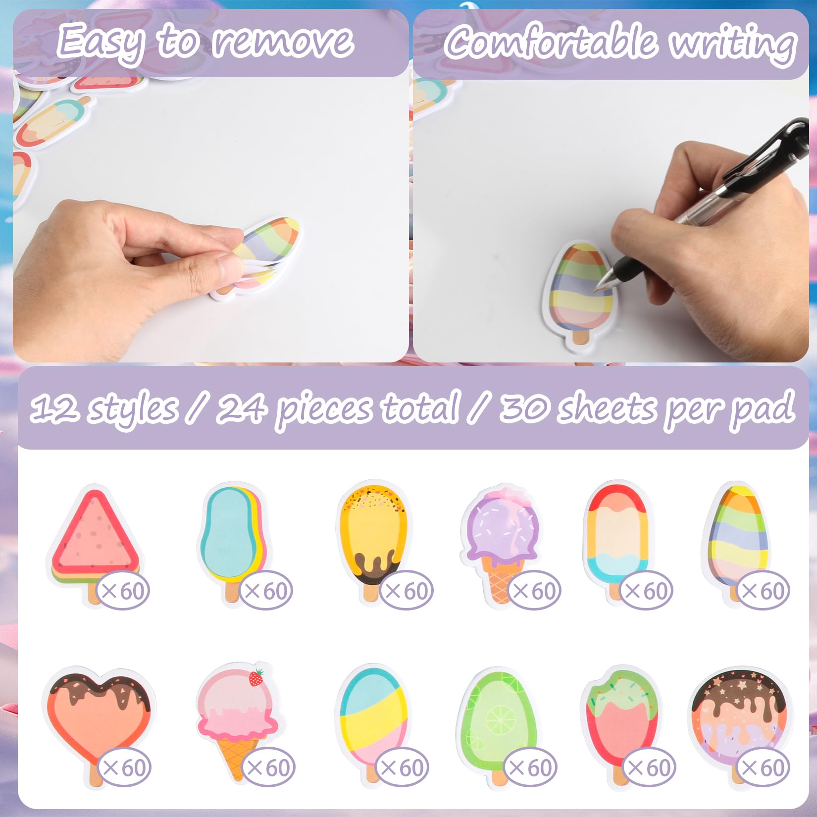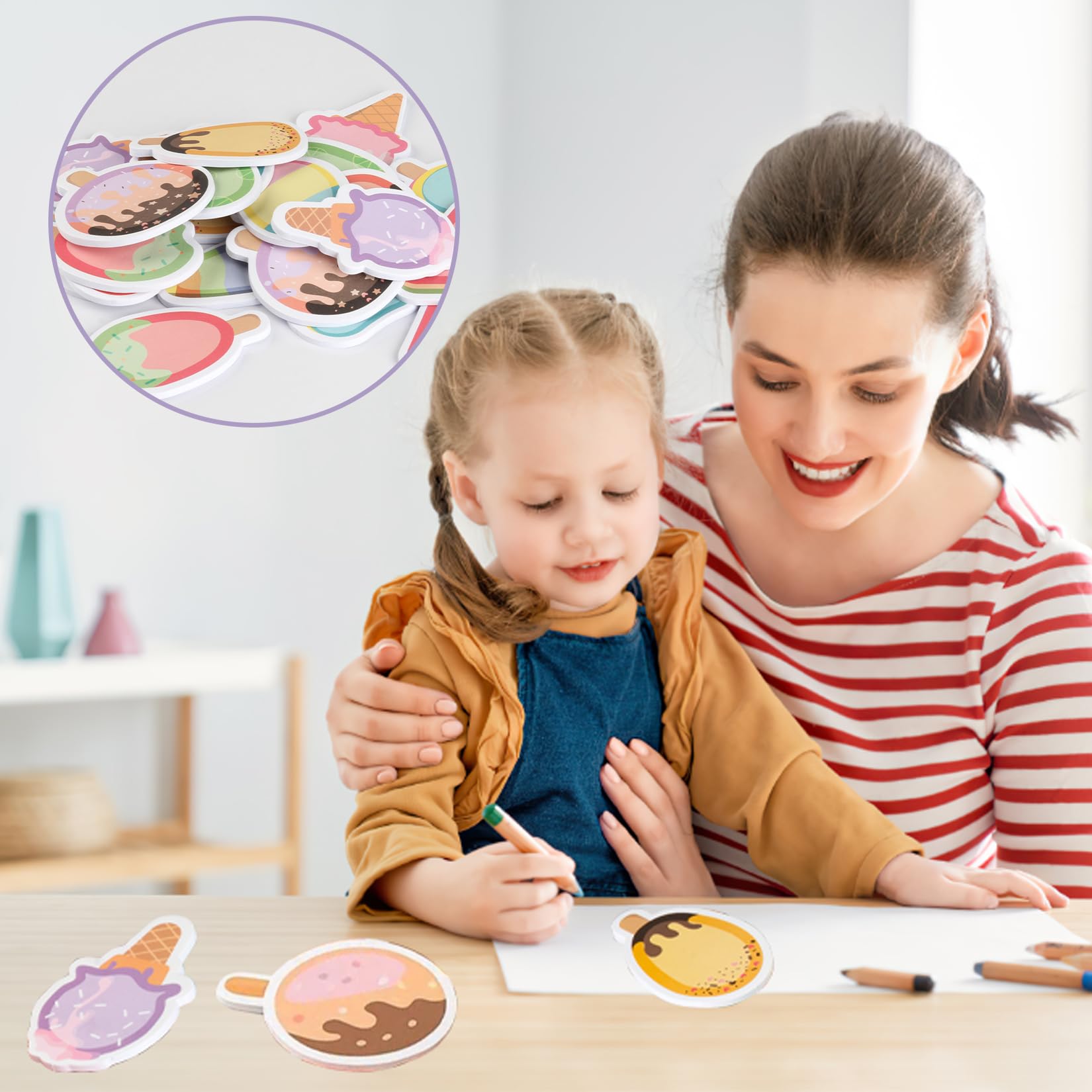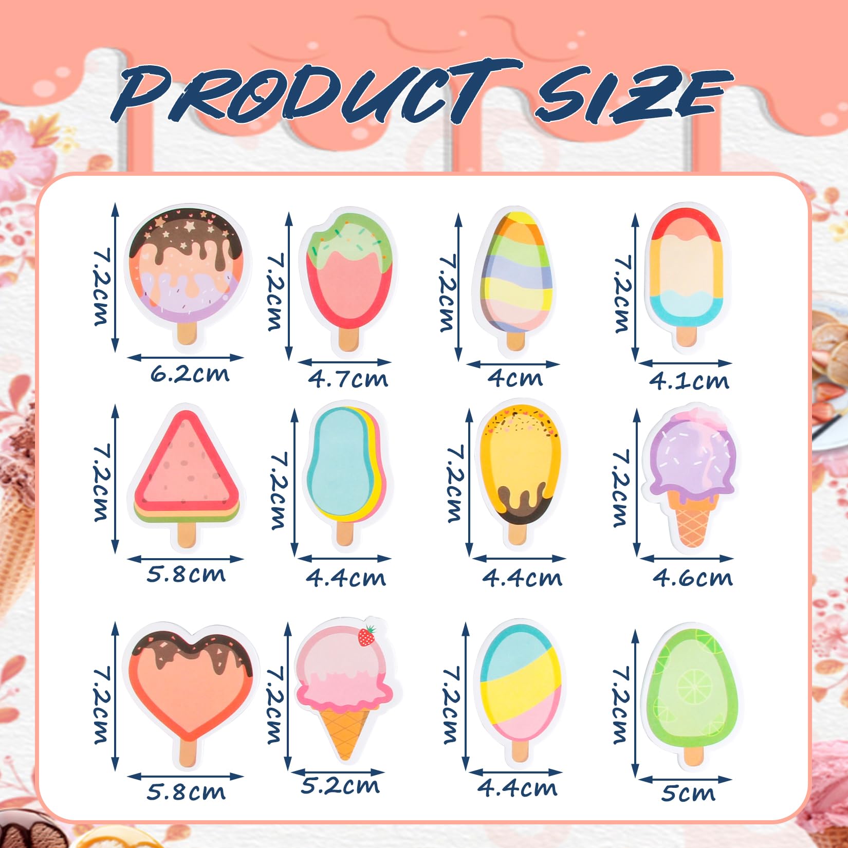 4. Die lustige Form des Eiscreme-Motivs ist ein Blickfang und eignet sich als Einkaufsliste, To-do-Liste, Erinnerungsstück, Büromaterial usw., um wichtige Dinge festzuhalten.