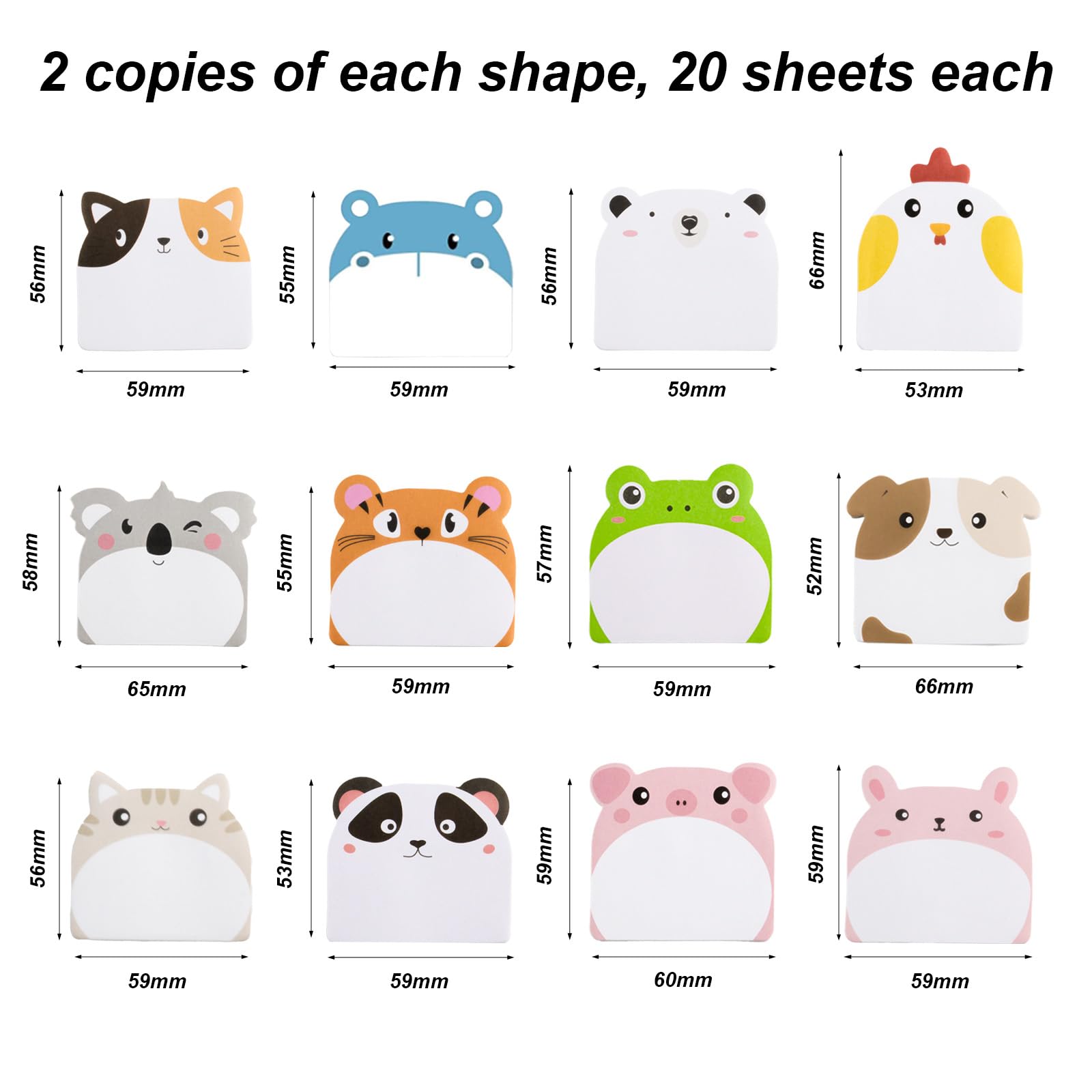 24 Paket Bunt Cartoon Tiere Haftnotizen Klebezettel, Sticky Notes, Selbstklebende Haftnotizzettel, Süsse Klein Büronotizen für Büro Schule Haus, Party Kindergeburtstag Gastgeschenke