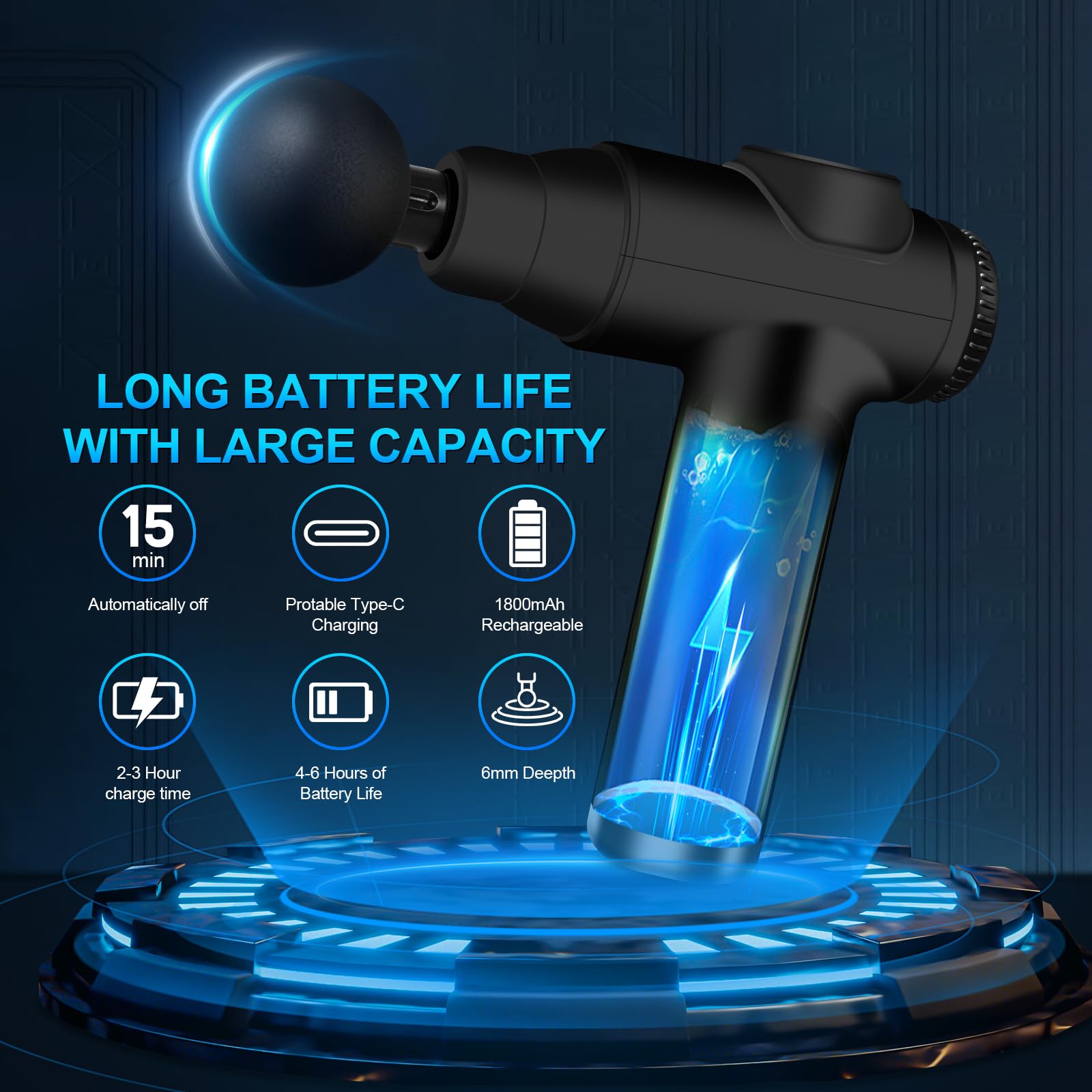 • 【Lange akkulaufzeit】: Diese Mini-Massagepistole ist mit einem fortschrittlichen 1800-mAh-Lithium-Akku ausgestattet, der mit einer einzigen ladung 4–6 stunden lang verwendet werden kann (abhängig von der massageintensität, die sie verwenden). Und die massagepistole verfügt über eine 15-minütige automatische stromausfallschutzfunktion.