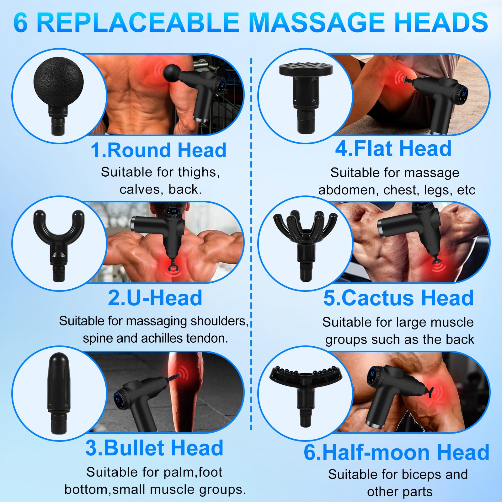 • 【32 Geschwindigkeiten und 6 massageköpfe】: Kommt mit 6 professionellen massageköpfen in verschiedenen Formen, die unterschiedliche massagebedürfnisse für alle Ihre verschiedenen körperteile und muskeltypen erfüllen, 32 geschwindigkeitsmodi einstellbar (800 bis 3500 U/min), wählen sie die geschwindigkeit und massageköpfe, ihren bedürfnissen am besten entsprechen.