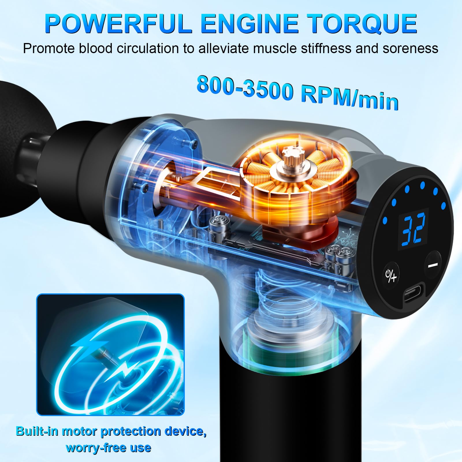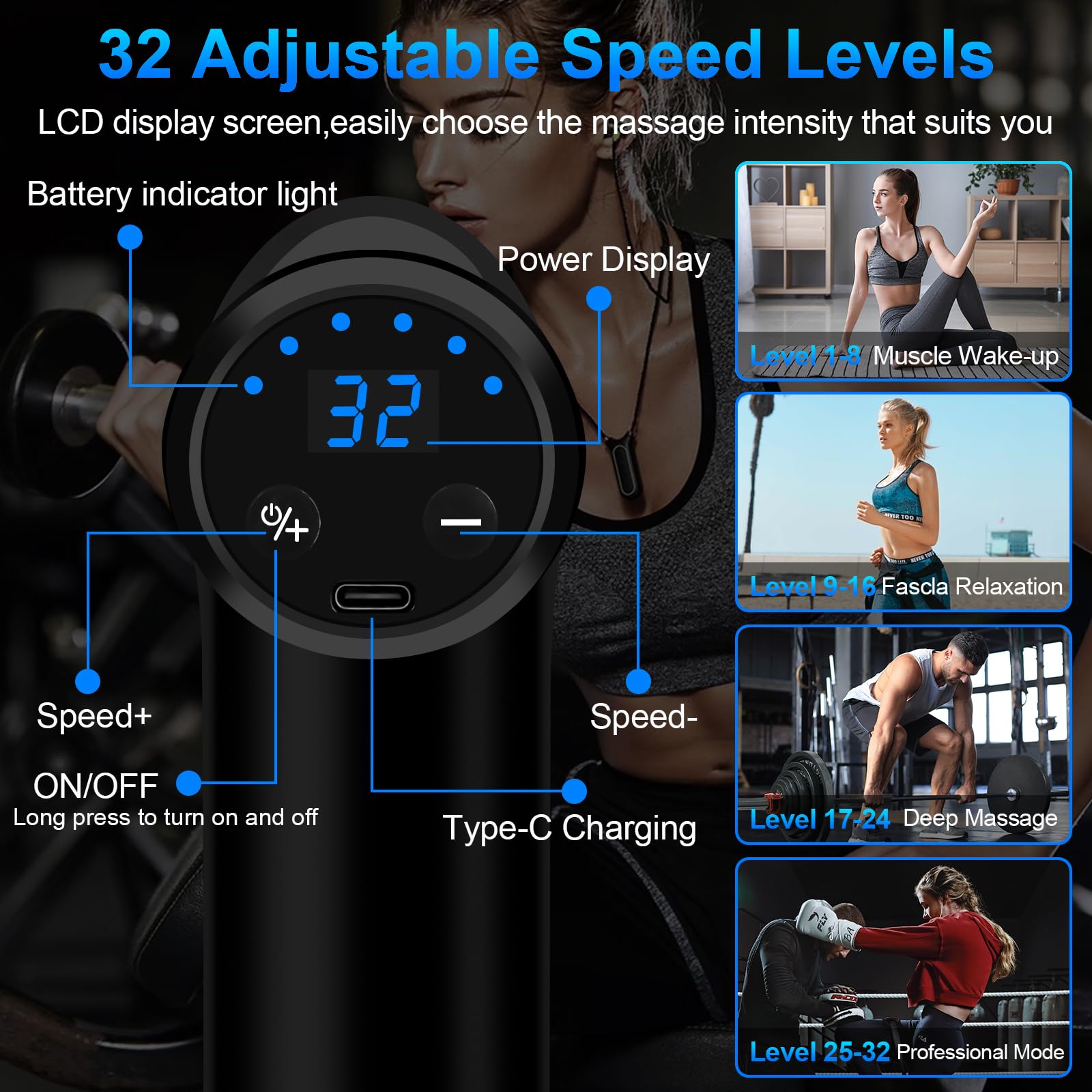 • 【32 Geschwindigkeiten und 6 massageköpfe】: Kommt mit 6 professionellen massageköpfen in verschiedenen Formen, die unterschiedliche massagebedürfnisse für alle Ihre verschiedenen körperteile und muskeltypen erfüllen, 32 geschwindigkeitsmodi einstellbar (800 bis 3500 U/min), wählen sie die geschwindigkeit und massageköpfe, ihren bedürfnissen am besten entsprechen.
