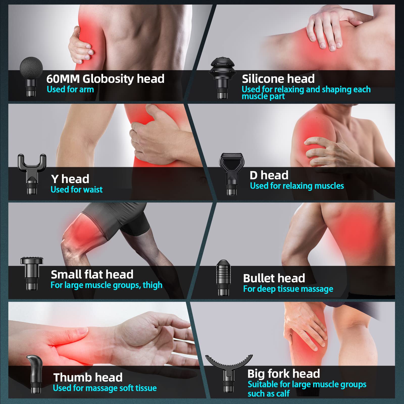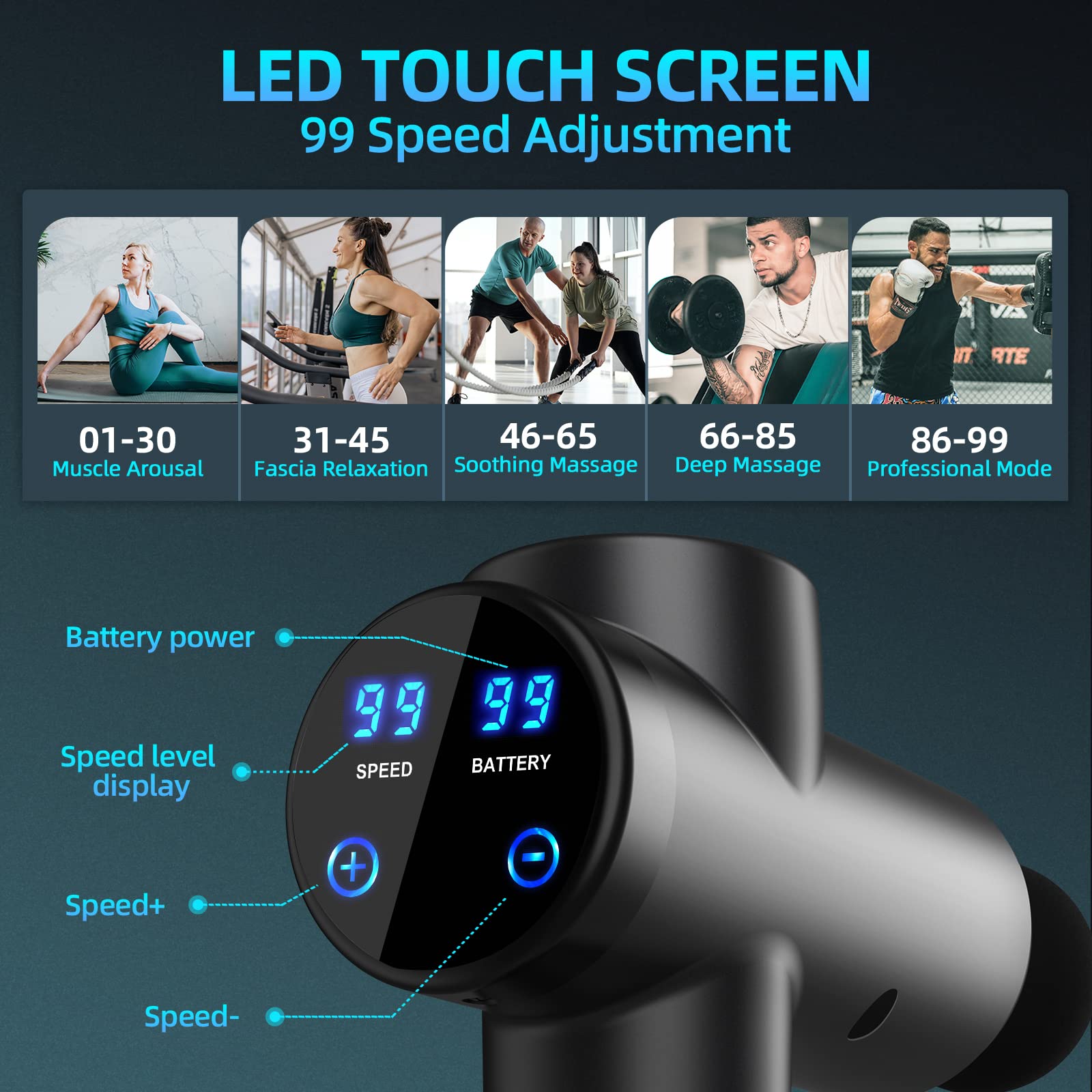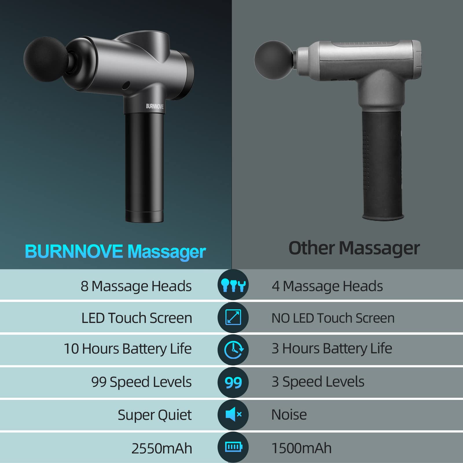 BURNNOVE Massagepistole Elektrische Massage Gun 99 Geschwindigkeiten 8 Massageköpfe tragbares Tiefengewebe-Massagegerät 2550 mAh mit LED-Anzeige-Touchscreen für Rücken, Schulter Schmerzlinderung