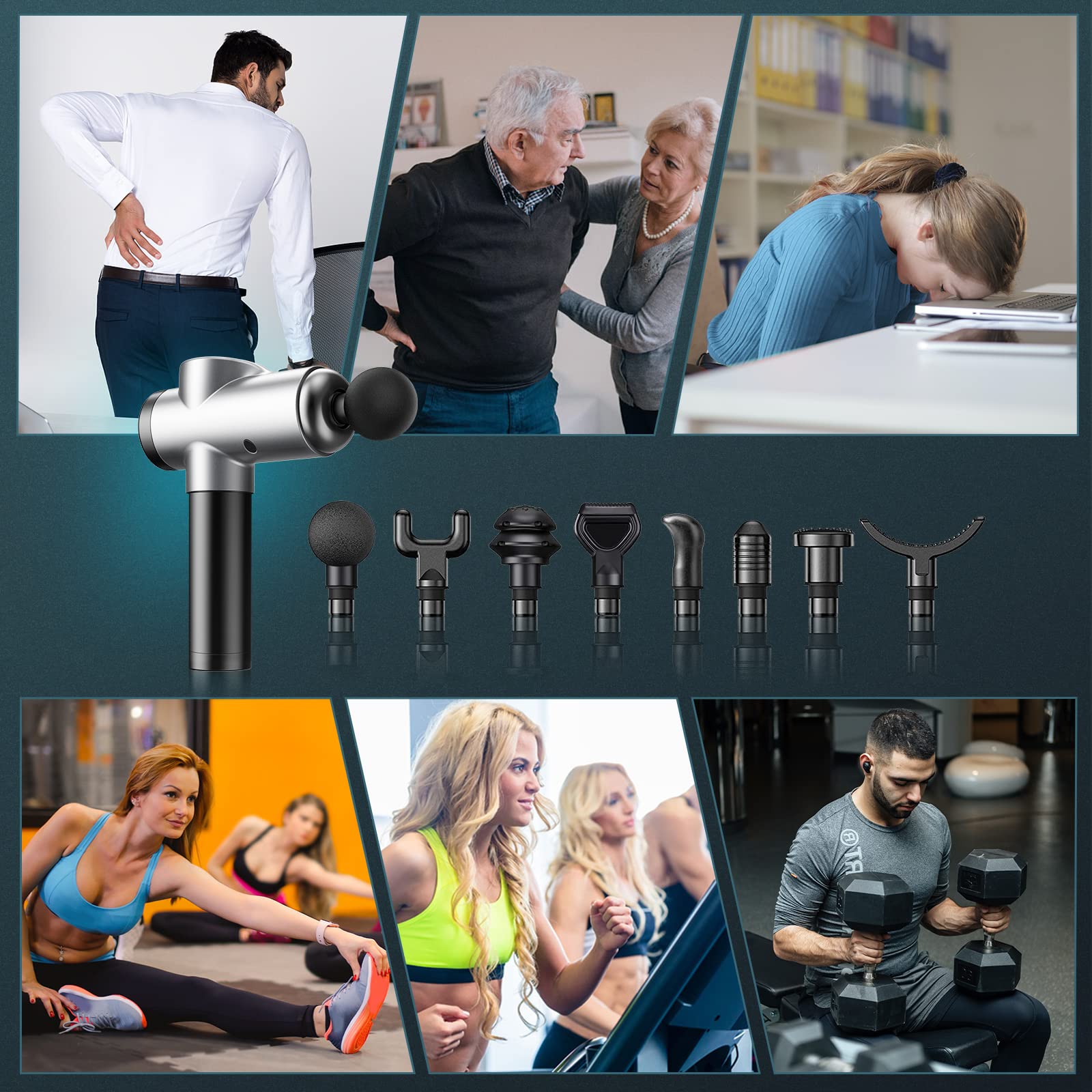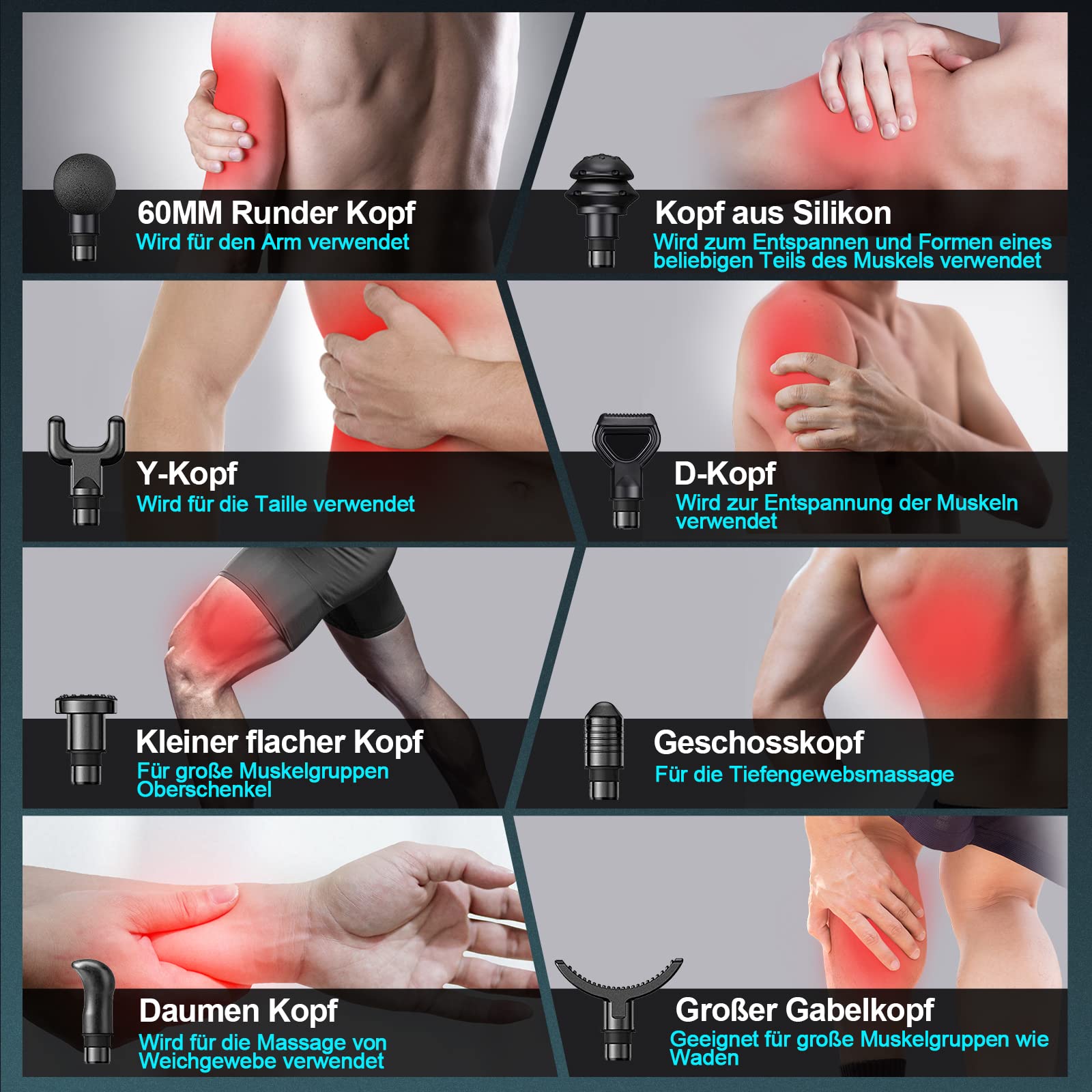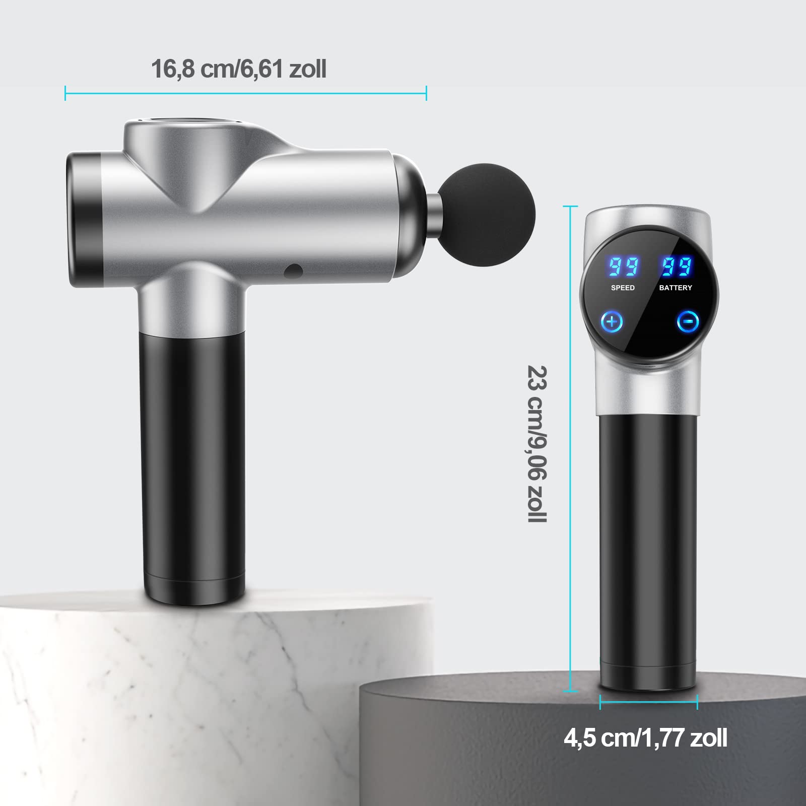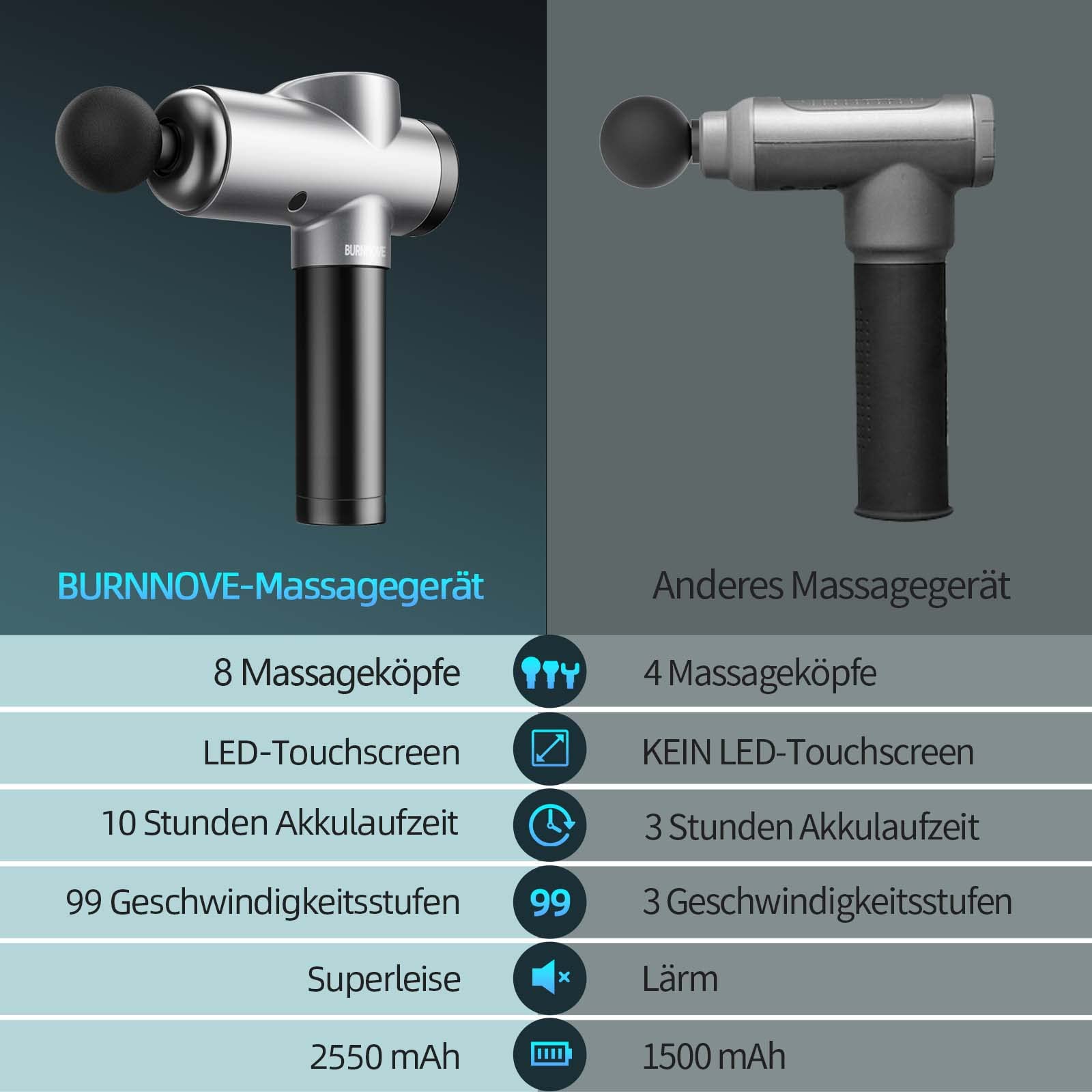 BURNNOVE Massagepistole Massage Gun 99 Geschwindigkeit 8 Massage Kopf Nacken Schulter Tiefenmassage Pistole 2550mAh mit LED-Anzeige Touchscreen geeignet für Haus Fitnessstudio Büro