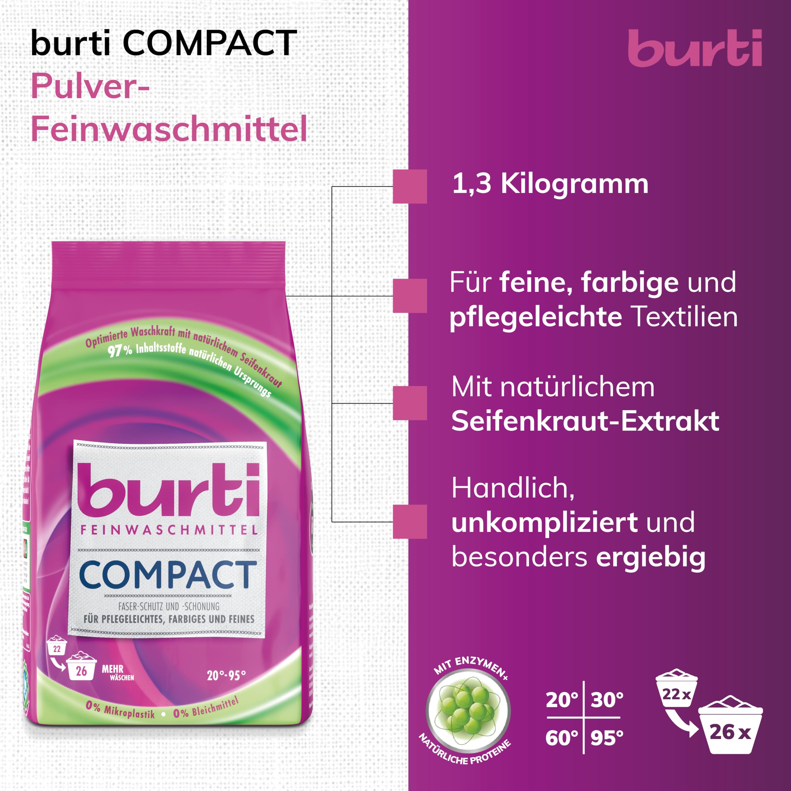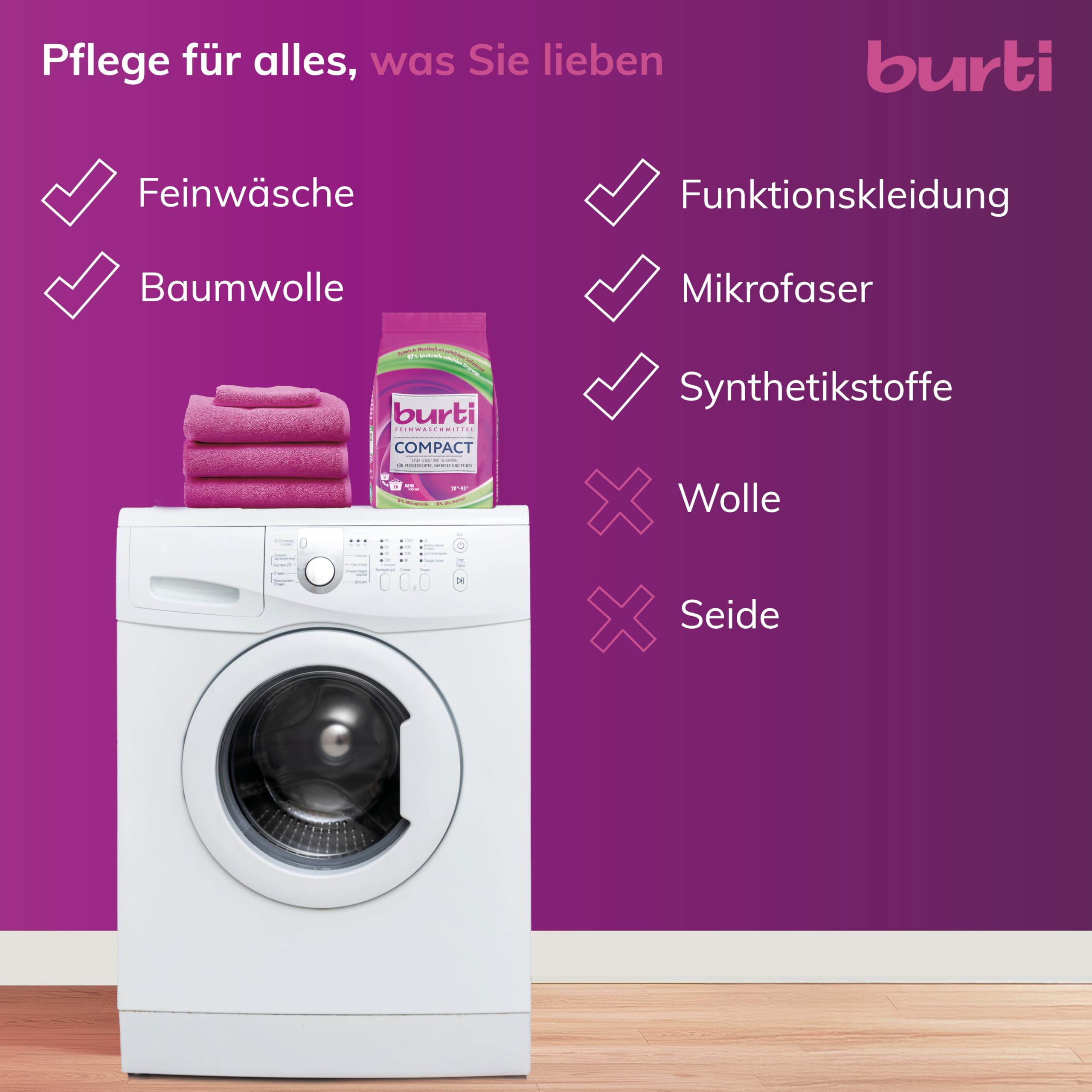 burti COMPACT Waschmittel Pulver – Waschpulver & Feinwaschmittel für bunte, feine Wäsche - Fleckenentferner mit Farb- & Faserschutz – ca. 26 Wäschen