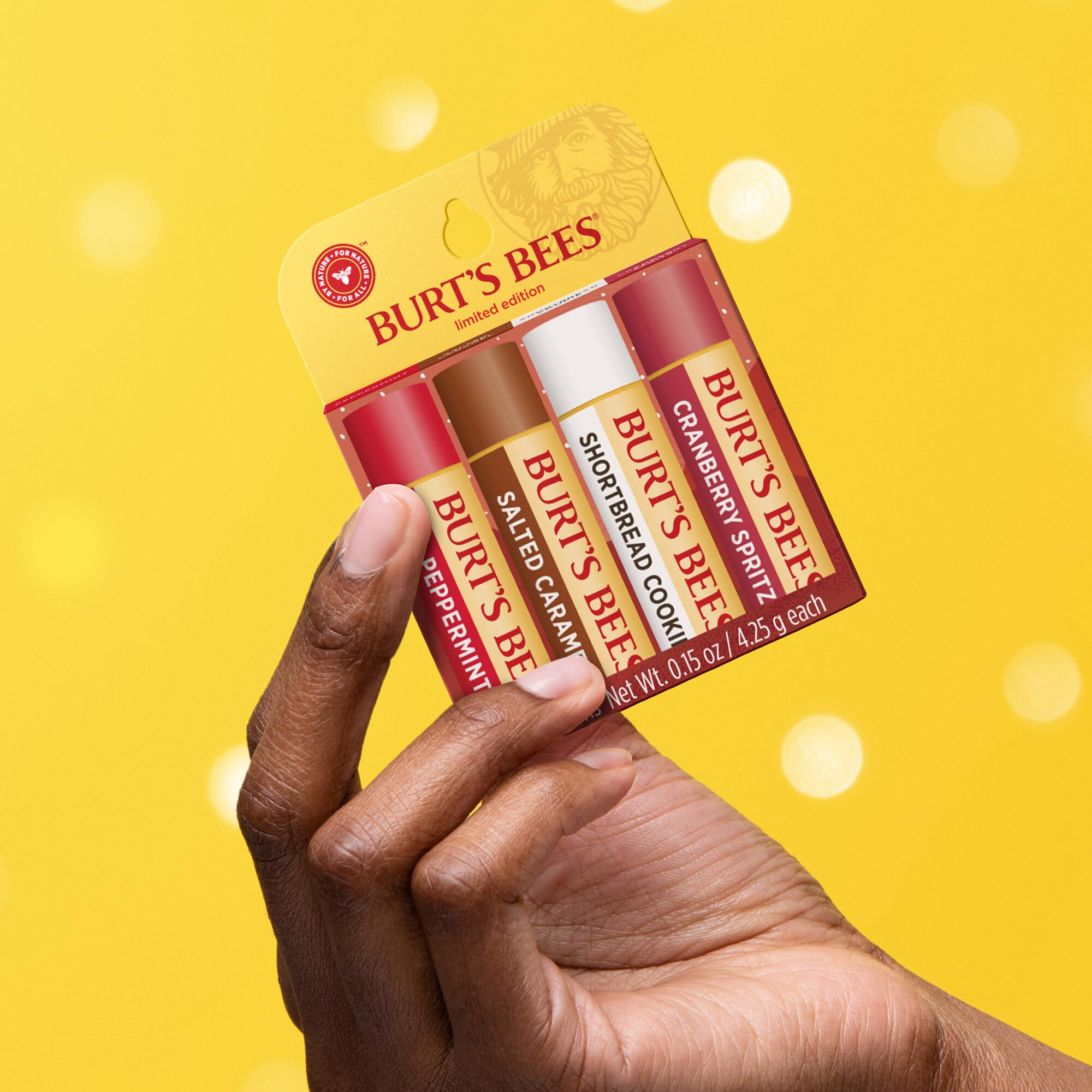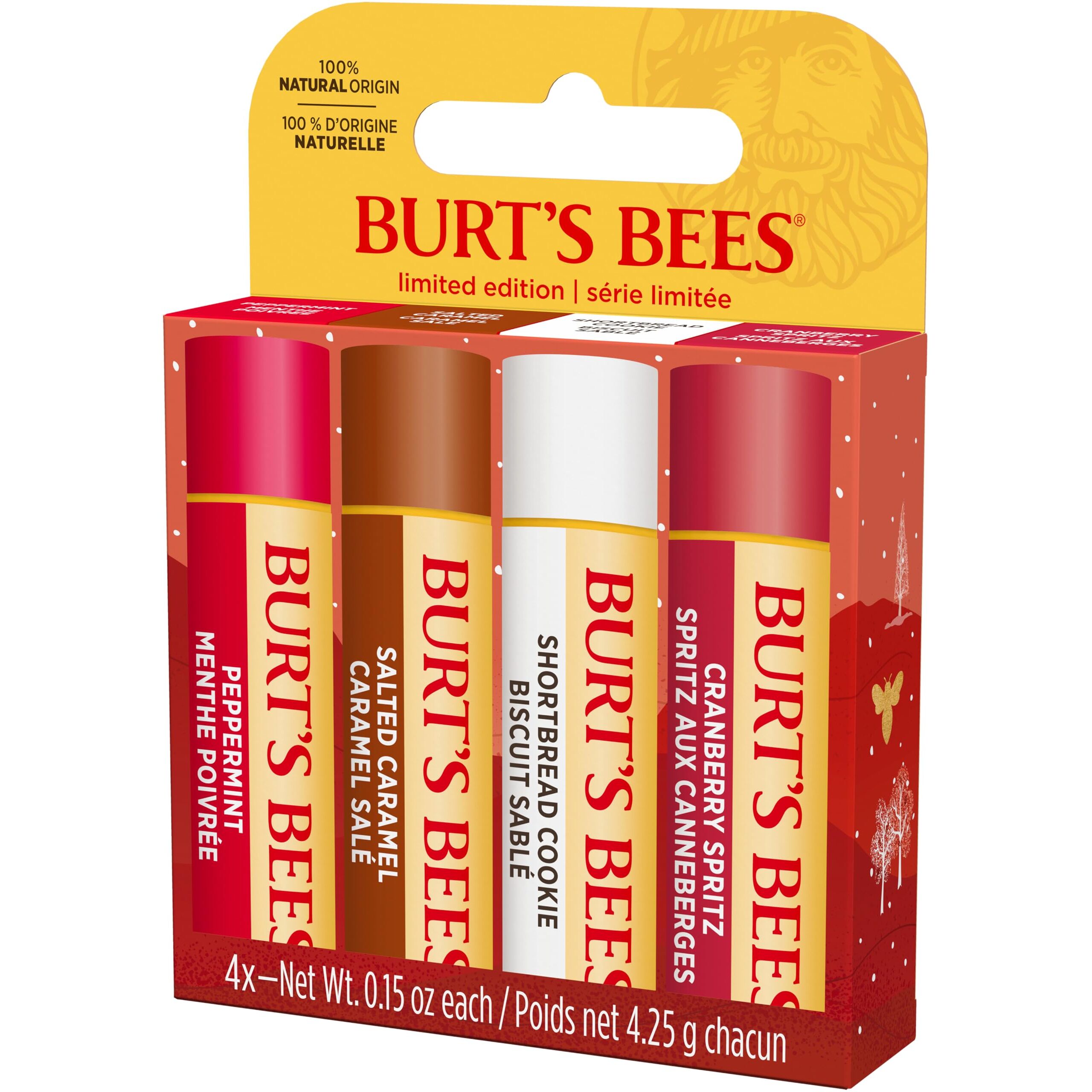 Burt's Bees Geschenkset | Lippenbalsam-Set mit Bienenwachs und Vitamin E | 100 % natürlichen Ursprungs | Shortbread Cookie, Cranberry Spritz, Salzkaramell und Pfefferminz | 4 x 4,25 g