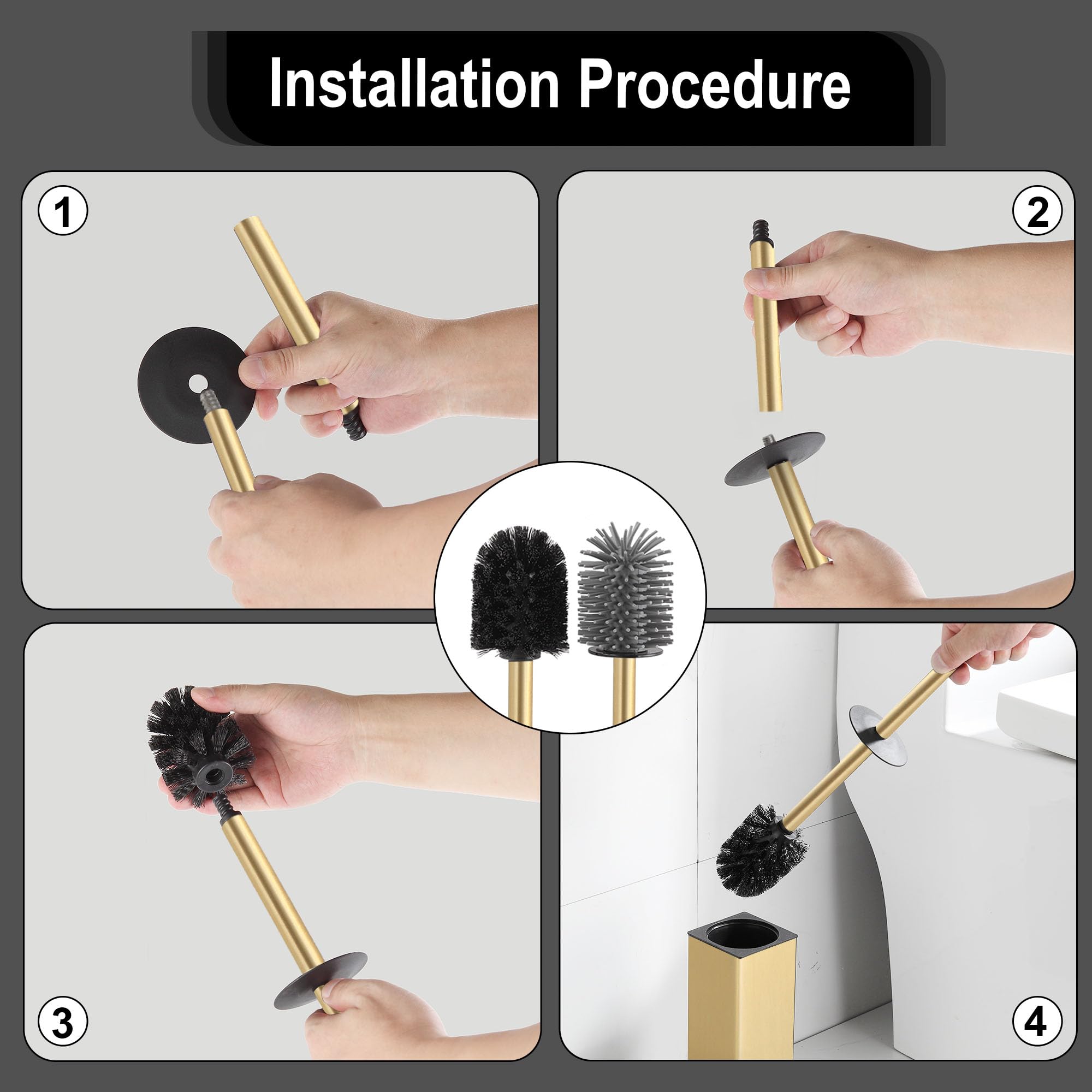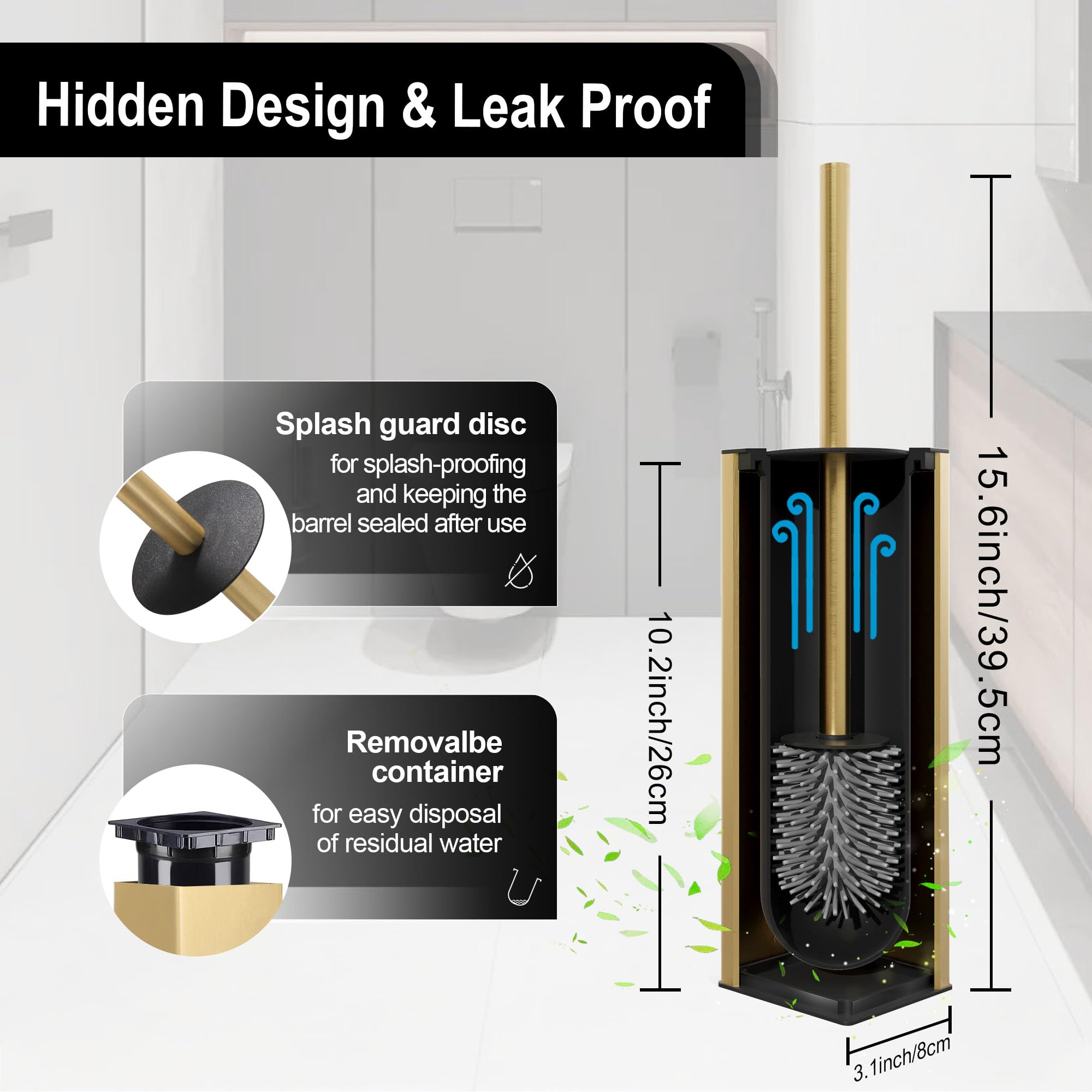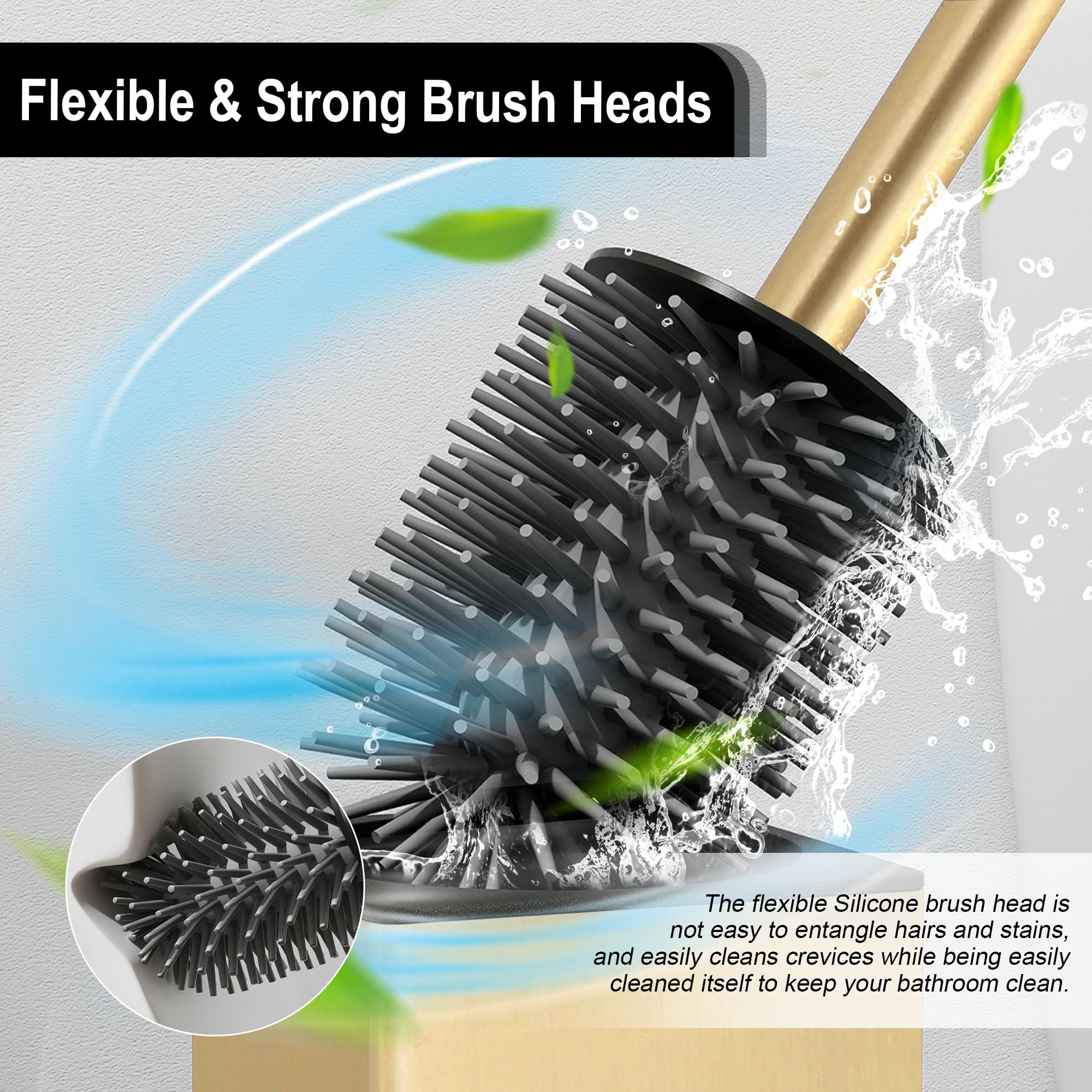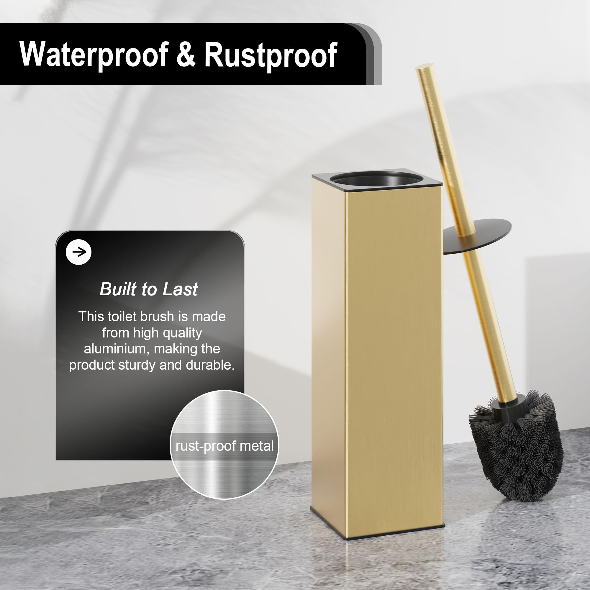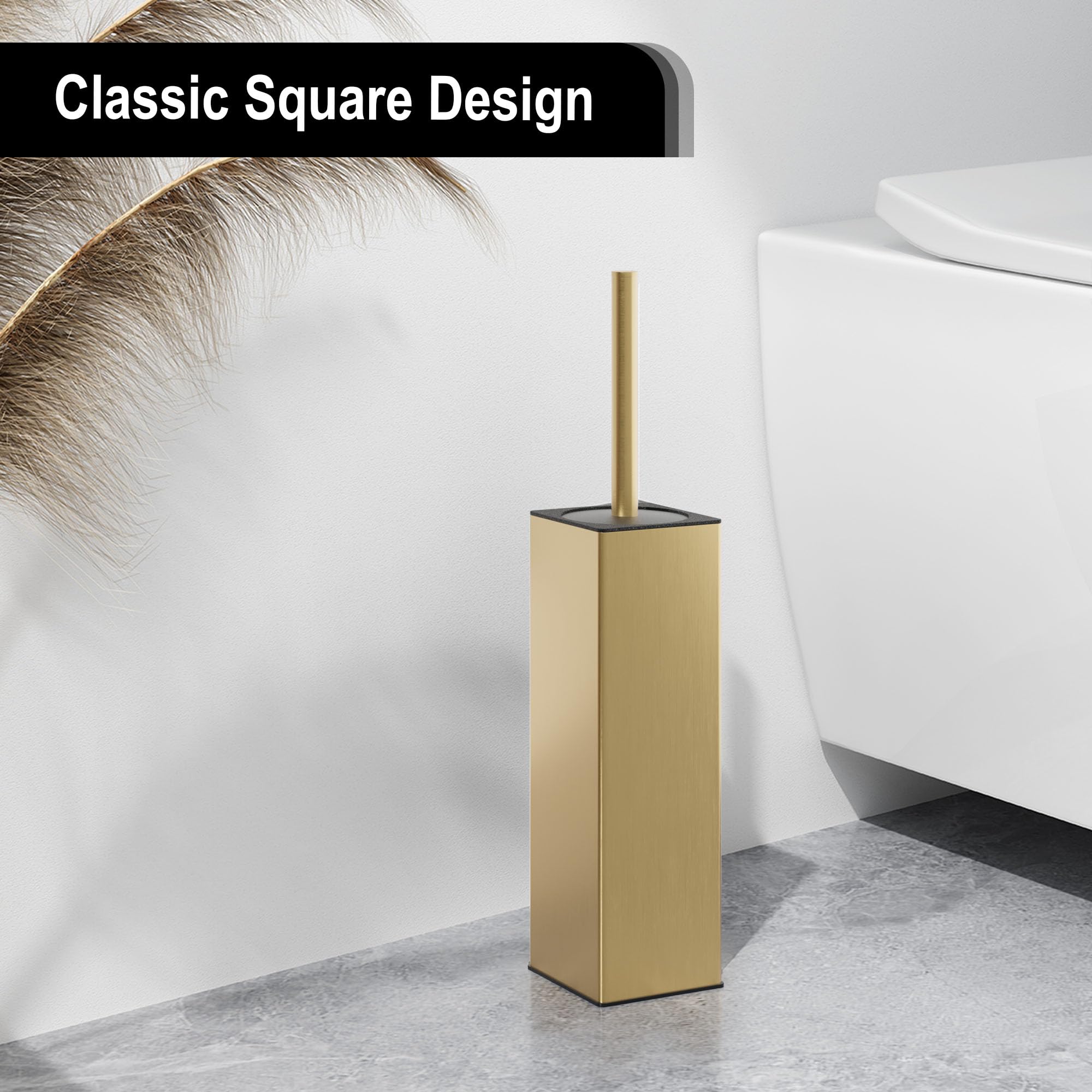 BVL WC Bürsten & Halter Gebürstetes Gold, Metall Toilettenbürste Inklusive 2 Bürstenköpfe, Freistehende Quadratisch Silikon Toilettenbürste für das Badezimmer