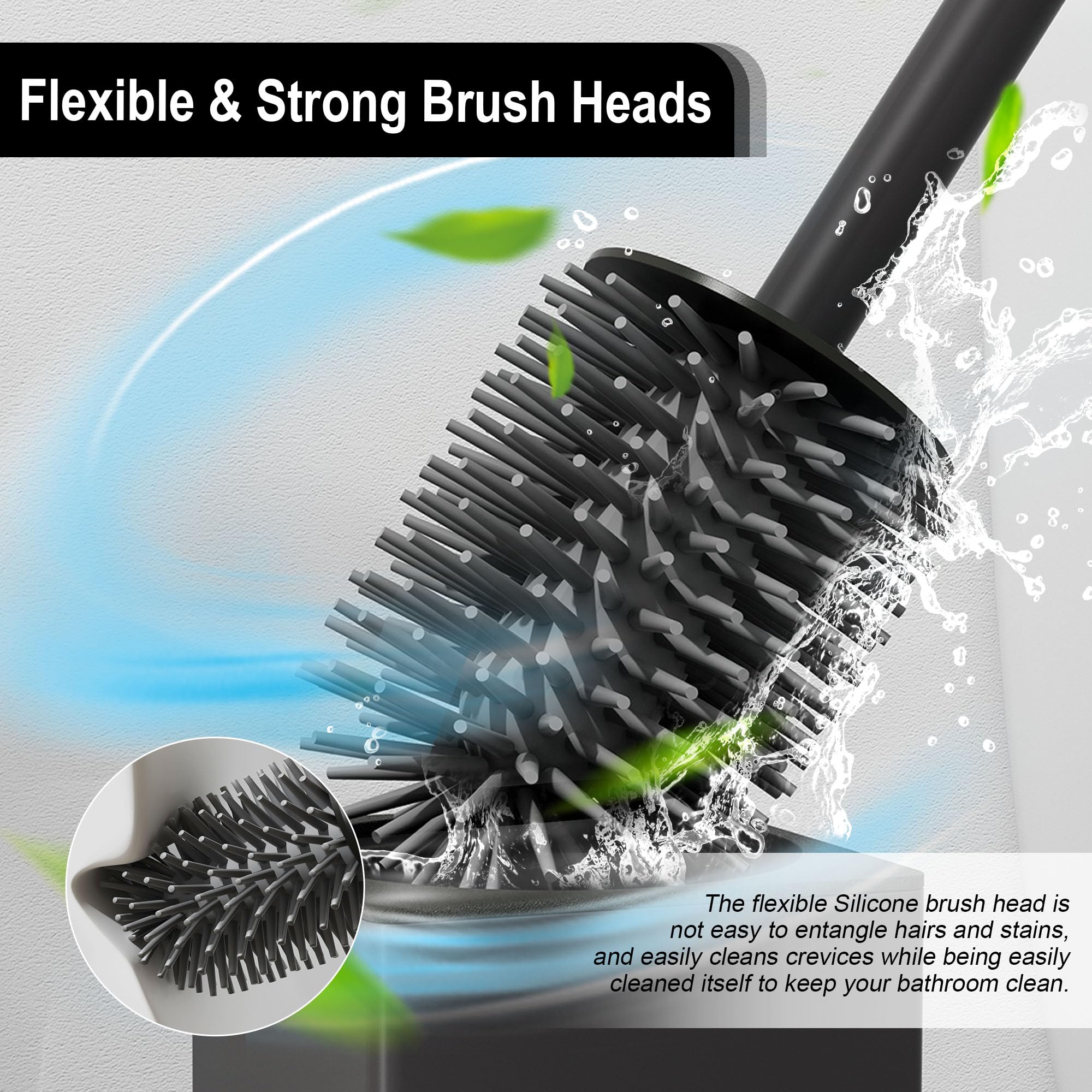 BVL WC Bürsten & Halter, Metall Toilettenbürste Inklusive 2 Bürstenköpfe, Freistehende Quadratisch Silikon Toilettenbürste für das Badezimmer