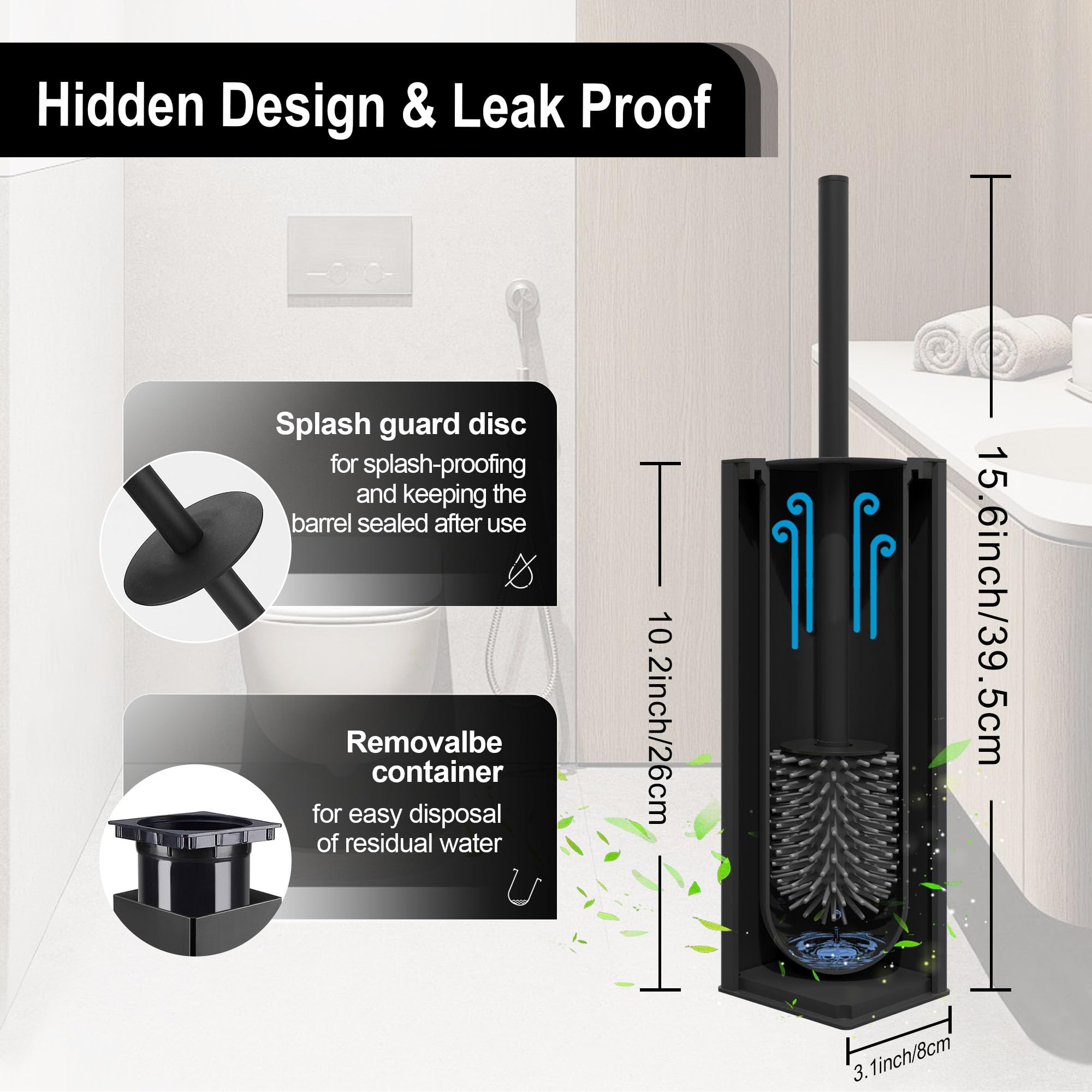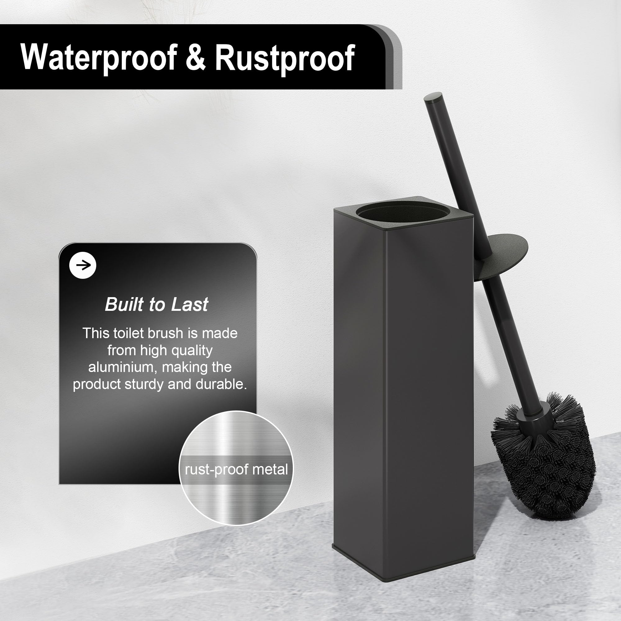 BVL WC Bürsten & Halter Schwarz, Metall Toilettenbürste Inklusive 2 Bürstenköpfe, Freistehende Quadratisch Silikon Toilettenbürste für das Badezimmer