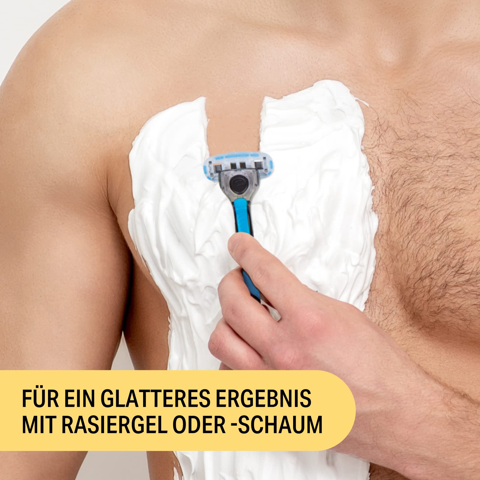 by Amazon 5-Klingen-Körperrasierer mit 7 Ersatzklingen. Mit Rasiergel oder Schaum verwenden, um die Haare vor der Rasur aufzuweichen - für ein glatteres Ergebnis. Vermeiden Sie das Berühren der Klingen. Nach der Rasur die Klingen nicht abwischen, sondern einfach abspülen und überschüssiges Wasser abschütteln. für eine optimale Leistung das Produkt zwischen den Anwendungen in einer trockenen Umgebung lagern.