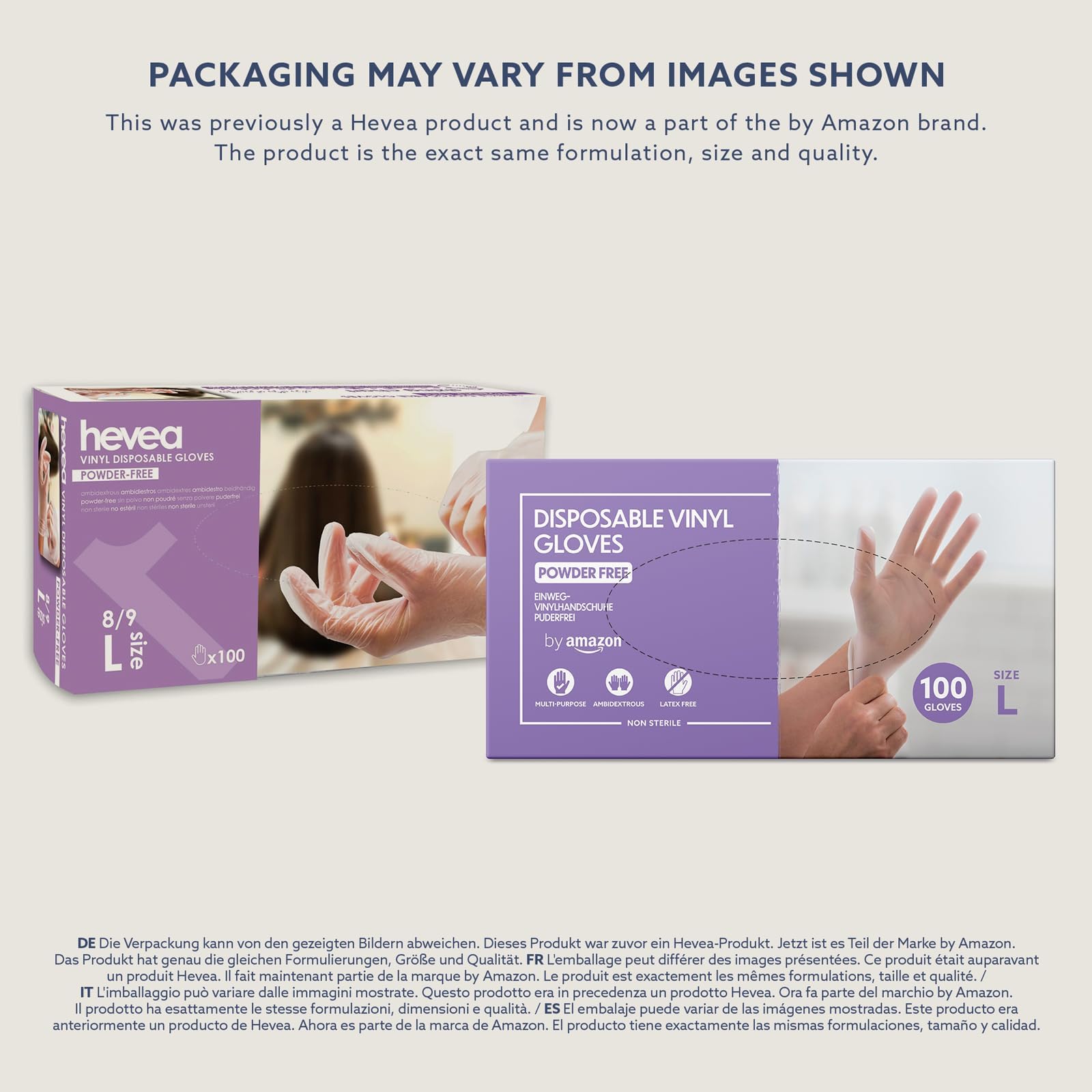 Hevea - Einweghandschuhe aus Vinyl. Puder- und latefrei. 1 Karton mit 100 Handschuhen. Grösse: L (gross) (Packung mit 2)