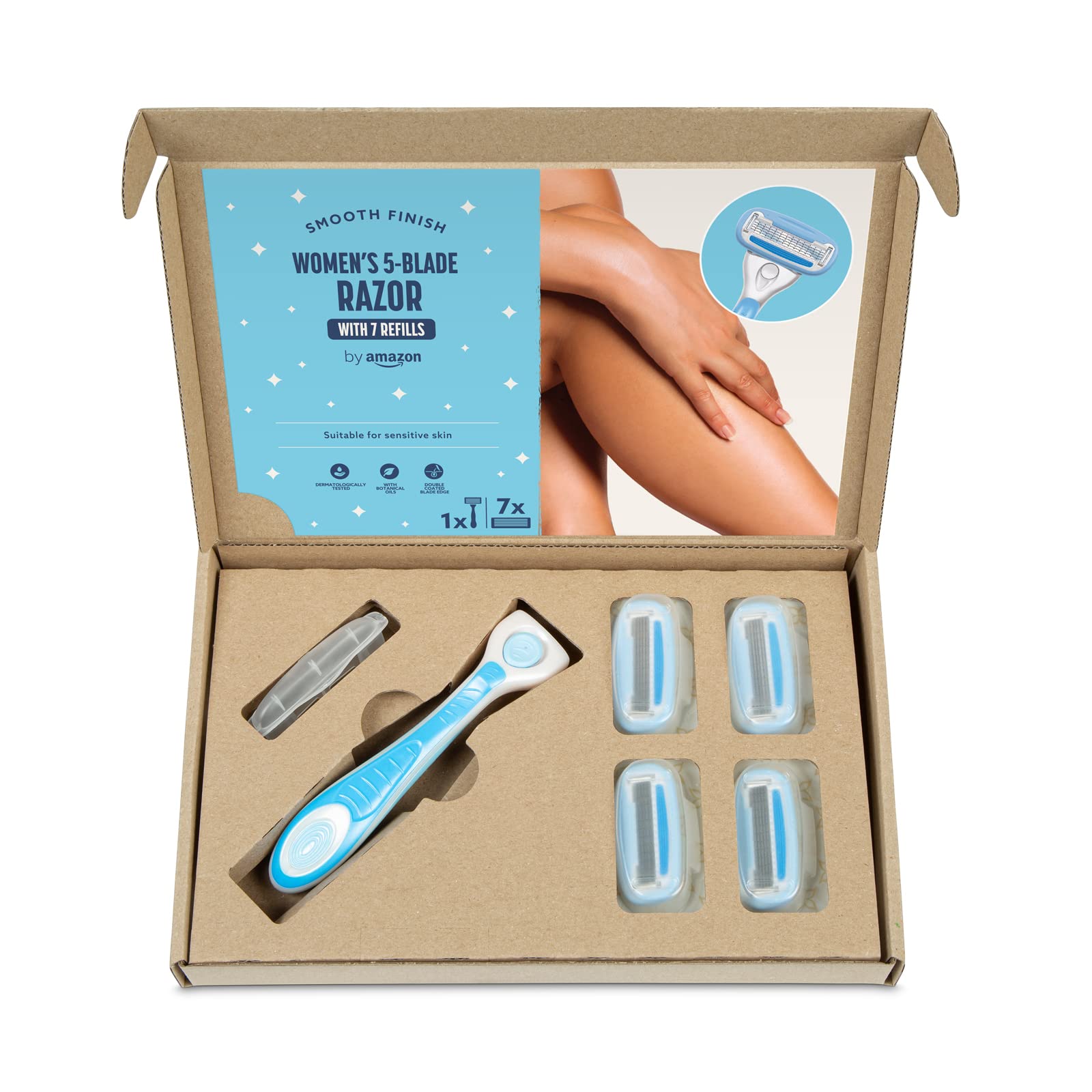 by Amazon für Damen, 5-Klingen Rasierer, 7 Nachfüllpackungen, Blau