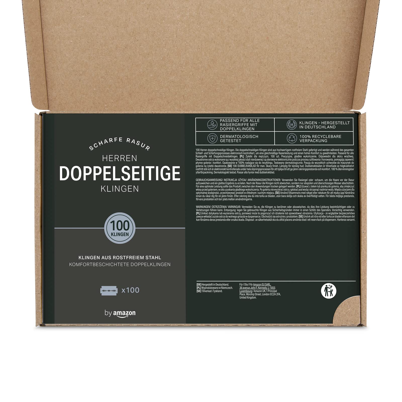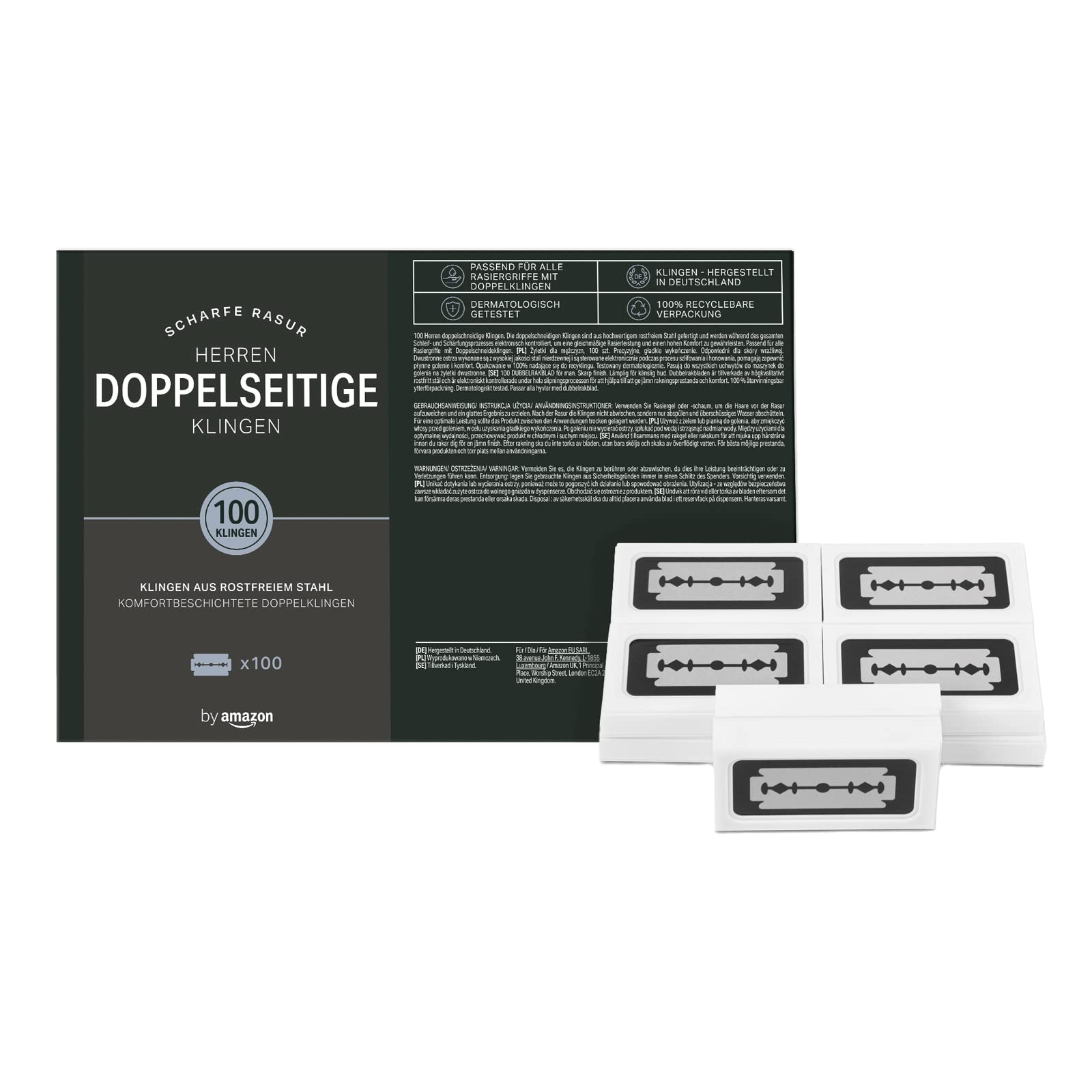 by Amazon Herren Doppelkanten Klingen Rasierer, Silber, 100 Stück