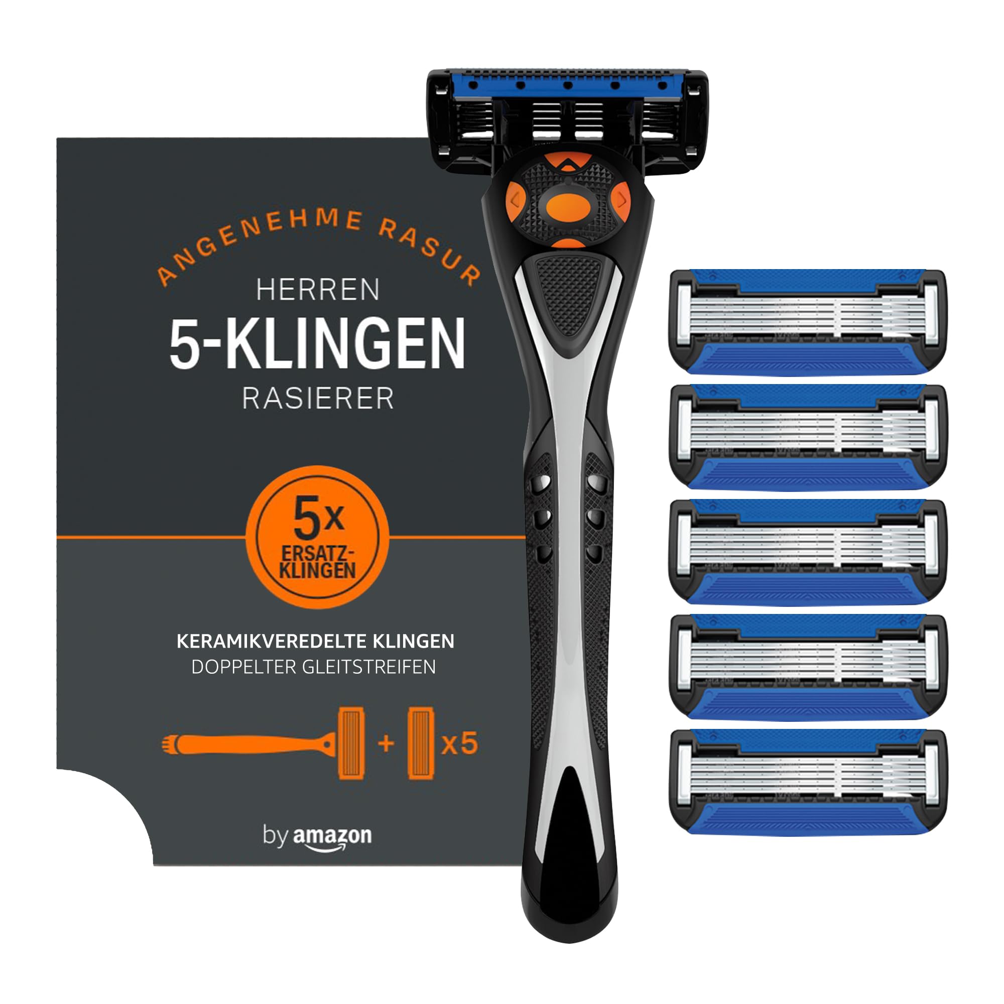 by Amazon Herrenrasierer mit 5 fach Klinge, Mehrfarbig, Rasiermesser & 6 Klingen