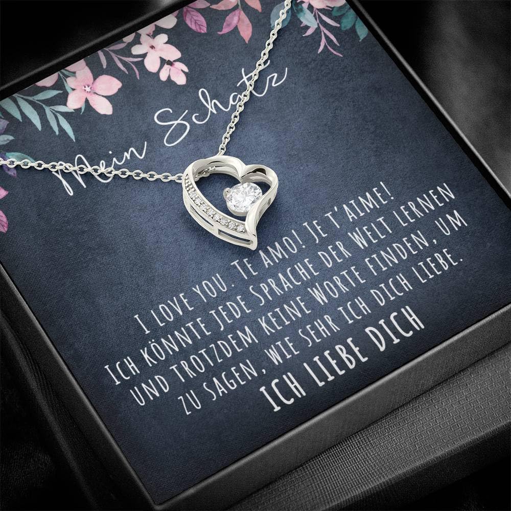 BYLITZ 925S An meinen Schatz Halskette mit Karte Herz Kette mit Spruch für Damen Frau Partnerin Freundin Verlobte zum Jahrestag Geburtstag Weihnachten
