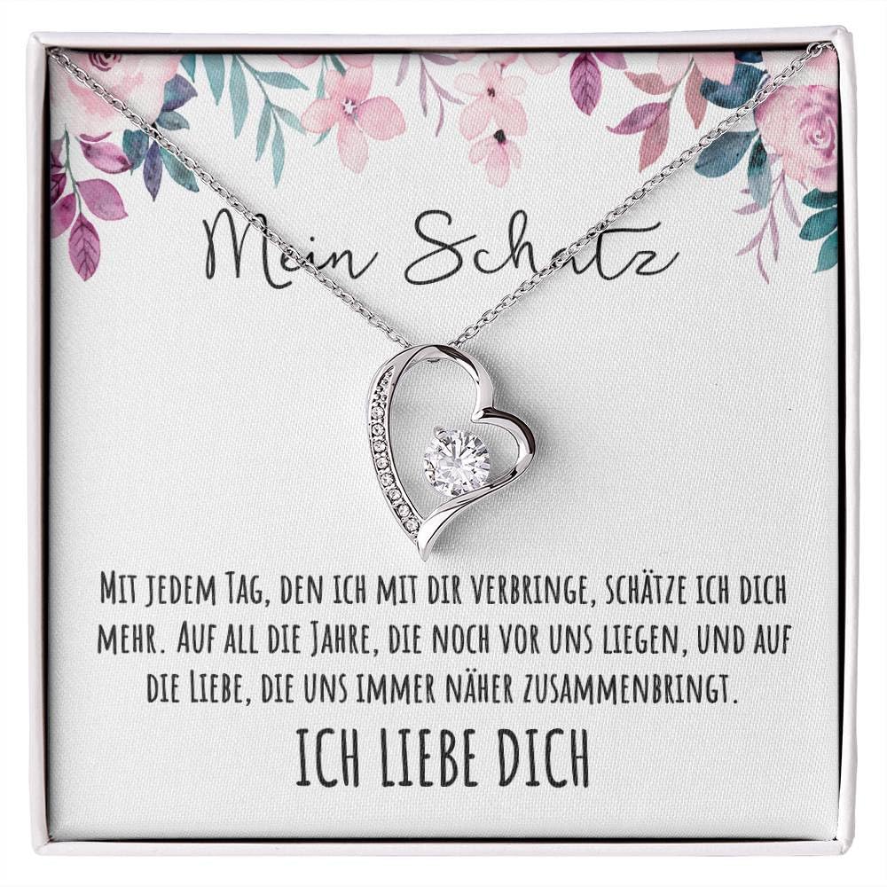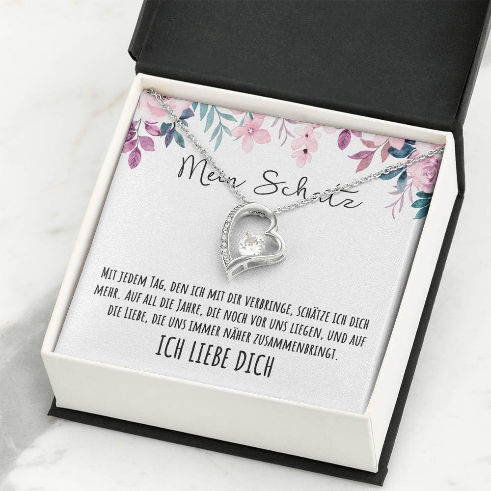 BYLITZ 925S An meinen Schatz Halskette mit Karte Herz Kette mit Spruch für Damen Frau Partnerin Freundin Verlobte zum Jahrestag Geburtstag Weihnachten