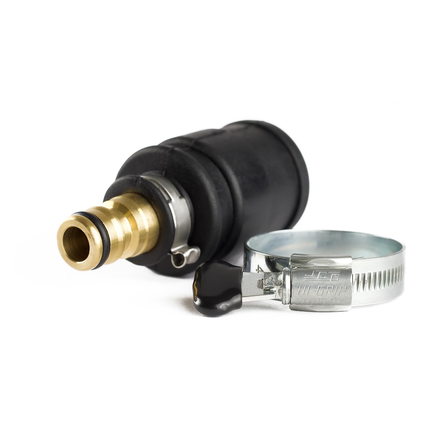 WasserhananschlussMassives Messing - robust und korrosionsbeständigKugelgelagerte Verriegelung - Sicher und strapazierfähigSchraubklemme für sicheres Fixieren am Schlauch/Wasserhahnanschluss für glatte Hähne. (Nicht geeignet für hohen Wasserdruck. )