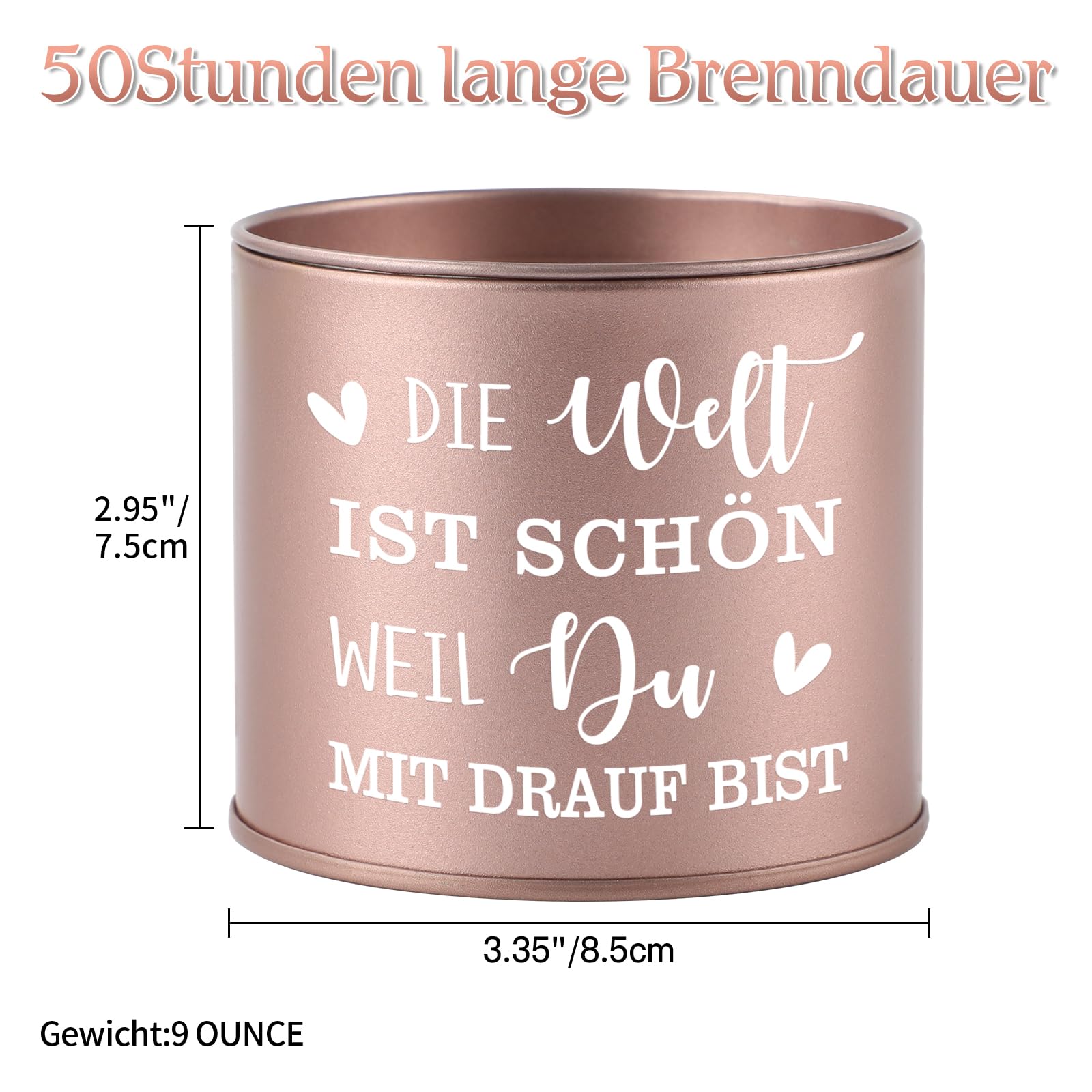 -Sicherheit hat Priorität. Bitte halten Sie die Kerze beim Brennen von brennbaren Gegenständen fern und stellen Sie sie auf eine ebene Fläche. Lassen Sie die Kerze nicht unbeaufsichtigt.