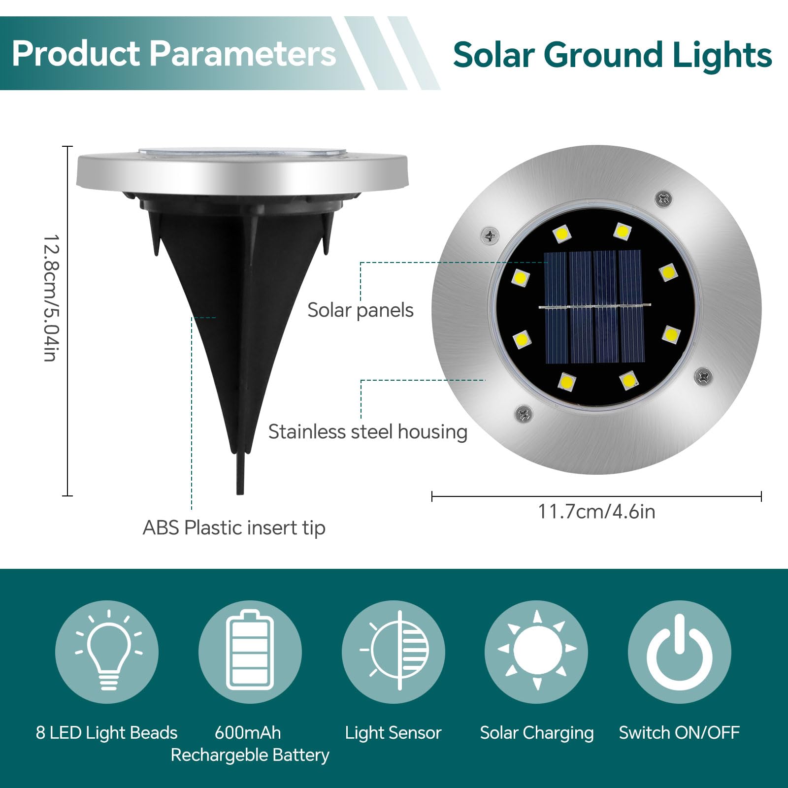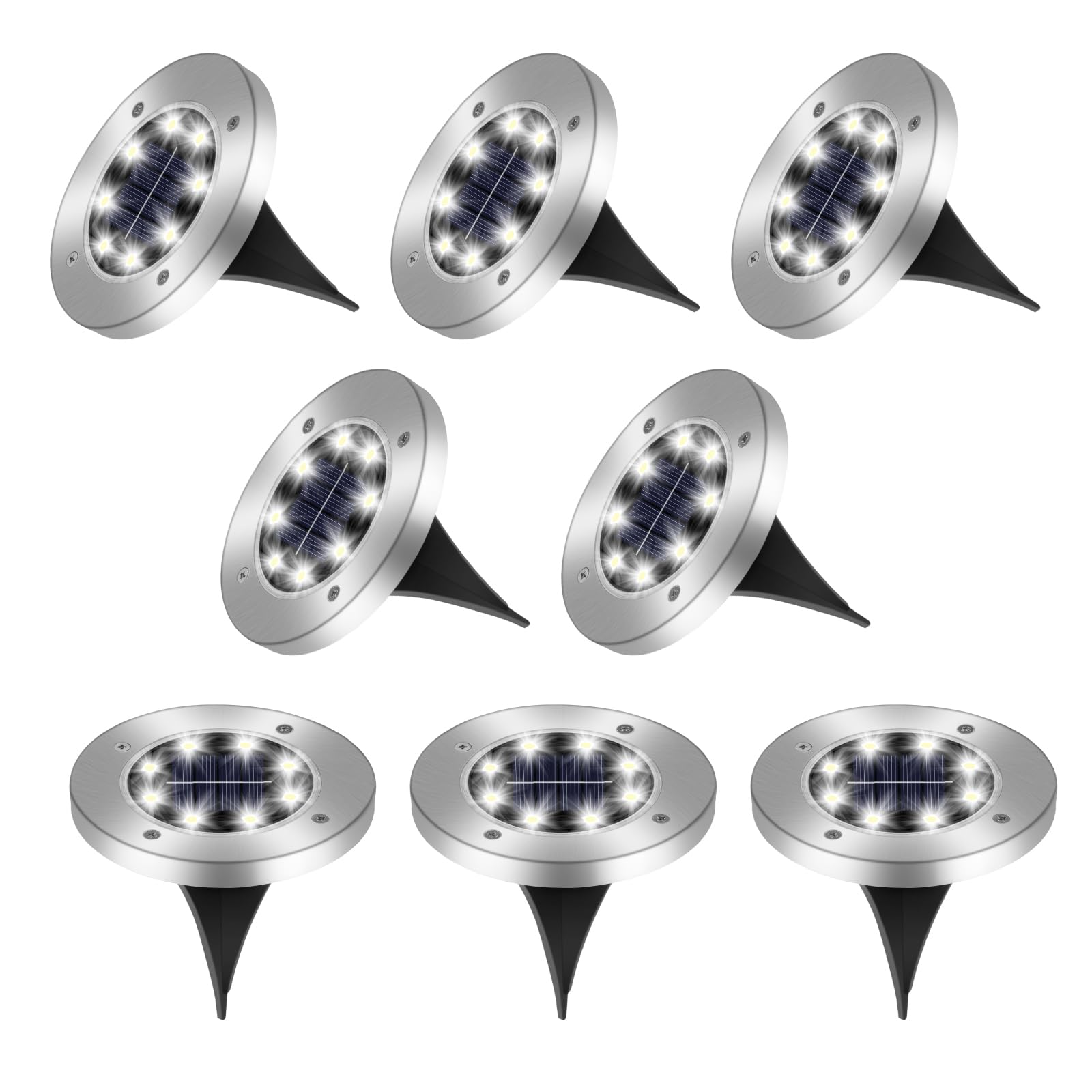 Caldarax 8 Stück Solar Bodenleuchten Aussen für Garten, 8 LEDs Solar Gartenleuchte IP65 Wasserdicht, LED Boden Solarleuchten Edelstahl für Garten Rasen Patio Gehweg Auffahrt(Kaltweiss)